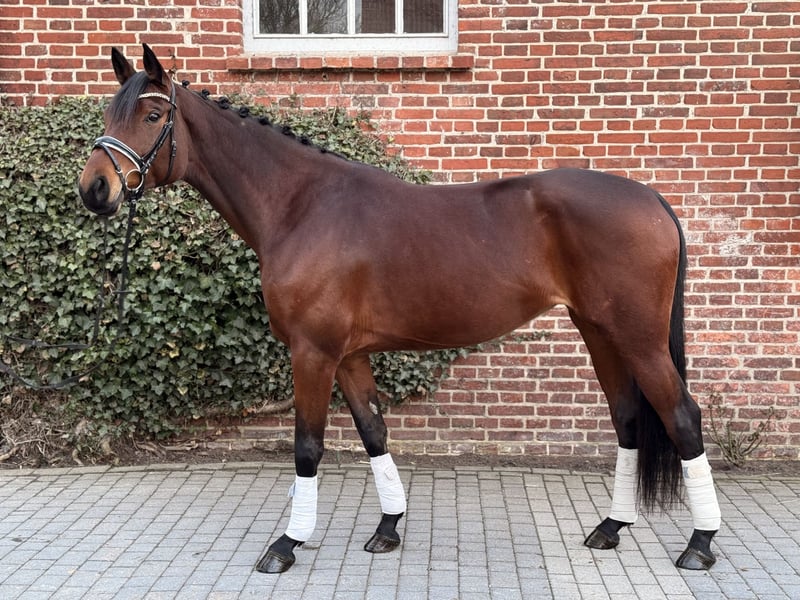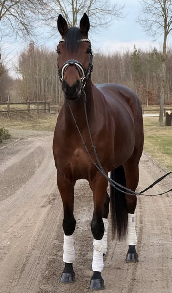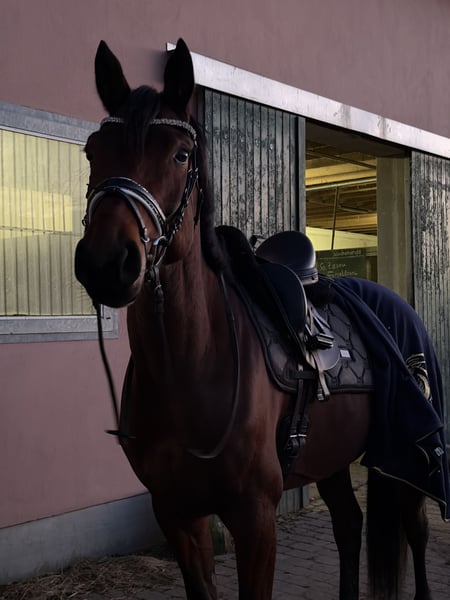Zum Verkauf steht eine 5-jährige, ca. 1,70 m große Hannoveraner Zuchtstute, eingetragen im Stutbuch I. Abstammend von Desperados & Finest. Sie hatte im April 2025 ein gesundes Stutfohlen zur Welt gebracht. In dieser Zeit zeigte sie sich auch absolut unkompliziert im Umgang - das Trennen von ihr und dem Fohlen verlief immer problemlos. Die Stute geht auf den Anhänger/Transporter, kennt die Führanlage, ist regelmäßig beim Schmied, Zähne wurden gemacht, Herpes, Influenza, Tetanus geimpft .Turnierpferdeeintragung vorhanden. Geht spazieren, joggen, läuft am Fahrrad mit. Keine Krankheiten. Bei ernsthaftem Interesse gerne weitere Infos / Videos per Nachricht.