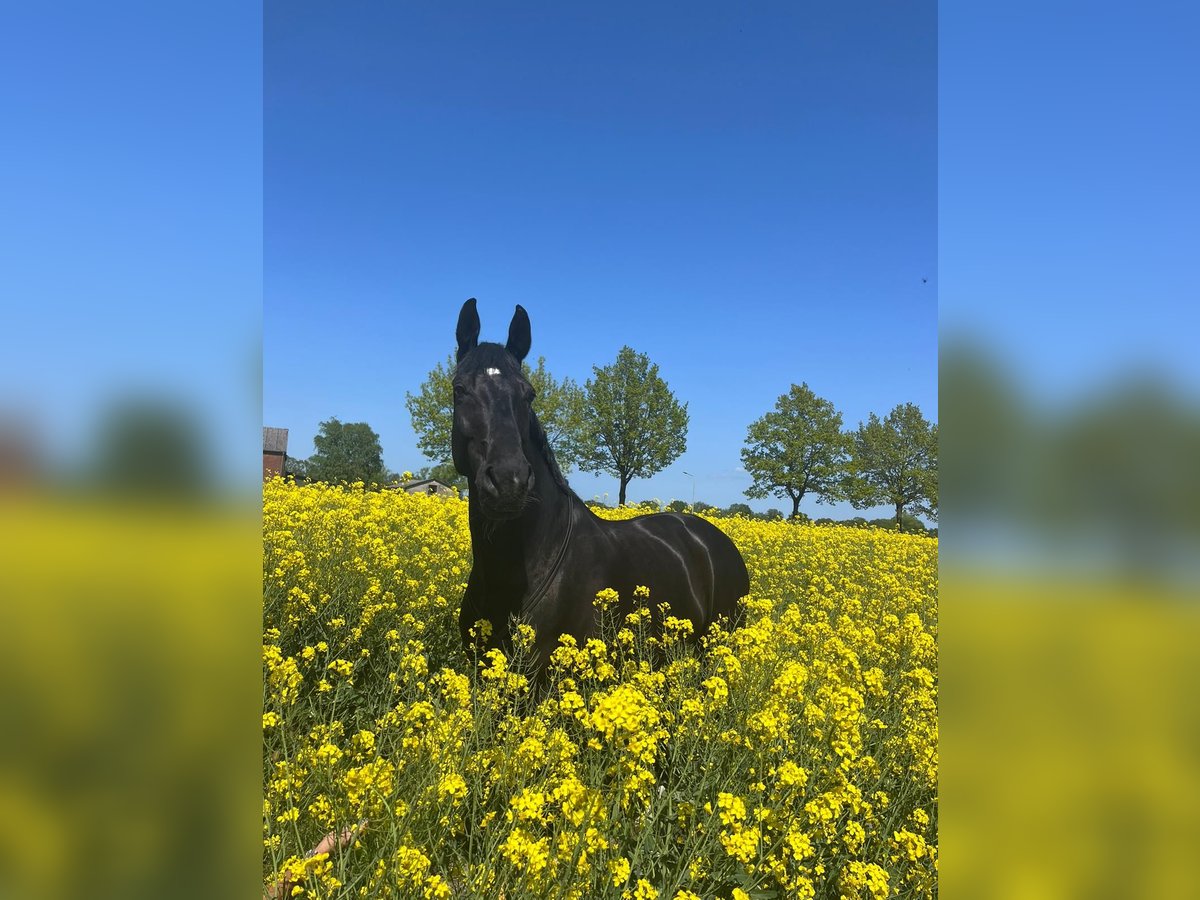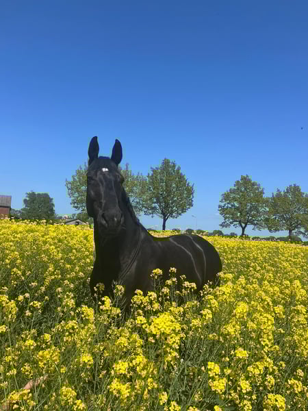 Nach längerer Krankheit braucht Risandro jemanden, der ihn behutsam und langsam wieder antrainiert. Ich habe leider aus beruflichen Gründen dafür keine Zeit. Deswegen habe ich mich dazu entschieden ihn abzugeben. Er ist ein seelengutes Pferd. Er ist everybodys Darling, sogar bei Tierärtzten, weil er so lieb und freundlich ist. Er ist ein Pferd der ein ruhiges Umfeld braucht und Nachts seine Box bevorzugt. Er liebt es in einer kleinen Gruppe tagsüber draußen seine Zeit zu verbringen. Er ist bis M-Dressur gelaufen und war S fertig. Leider ist er dann fast ein Jahr ausgefallen aufgrund Mauke und Phlegmonen. Er bringt alte Sehnenverletzungen mit. Aufgrund der schlechten Muskulären Situation ist er im Moment taktunrein und braucht nun jemand der Zeit und liebe investiert, um ihn wieder behutsam vom Boden aus anzutrainieren. Er geht auch brav ins Gelände, alleine oder in der Gruppe, an der Hand wie unterm Sattel. Der Tierarzt sagt aufgrund der alten Sehnenverletzungen sieht er ihn nicht mehr als Dressurpferd im großen Viereck aber eine kleine A-Dressur wird er sicher noch mal laufen können, wenn man ihn gut und schonend aufbaut. Er ist sehr leichtrittig und sensibel. Absolut brav im Umgang in allen Situationen. Ich würde mir wünschen, dass er einen Endplatz findet.