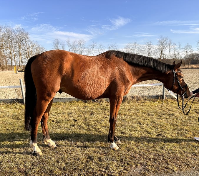 🌟 Qualität trifft Charakter Zum Verkauf steht ein hochinteressanter Mecklenburger Nachwuchsspringer mit klarer sportlicher Perspektive für den gehobenen Springsport. Bereits 3-jährig konnte er sich erfolgreich beim Freispringchampionat präsentieren und überzeugte dort mit: • großem Vermögen • sehr guter Technik • schneller Vorderbeine • viel Übersicht am Sprung Er ist angeritten und wird aktuell professionell und altersgerecht weiter für den Turniersport im Springen ausgebildet. Kerngesund, AKU mit Röntgen ohne Befund ⭐️ ⸻ Interieur – Ein Sportler mit klarem Kopf Neben seiner Qualität am Sprung besticht er besonders durch sein Interieur: ✔ freundlich und menschenbezogen ✔ unerschrocken und klar im Wesen ✔ hohe Lernbereitschaft ✔ motiviert und leistungswillig Er zeigt sich im täglichen Umgang brav, kennt Schmied und Verladen und ist unkompliziert im Handling. ⸻ Perspektive Durch seine Rittigkeit, Einstellung und sein Vermögen eignet er sich hervorragend als zukünftiges Umsteigerpferd für zB. eine ambitionierte junge Dame mit sportlichen Zielen im Springsport. Ein Pferd, das nicht nur Qualität, sondern auch Herz mitbringt – ideal für Reiter, die gemeinsam mit ihrem Pferd wachsen möchten. ⸻ Der Preis steigt mit weiterem Ausbildungsstand. Standort auf Anfrage. Bei ernsthaftem Interesse freuen wir uns über eine Nachricht mit kurzer Vorstellung.
