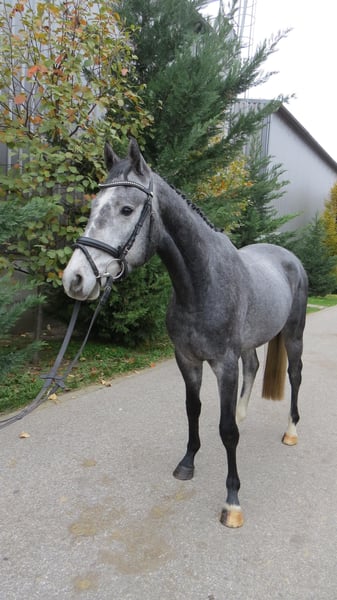 Schwere Herzens muss ich mich aufgrund von zu wenig Zeit, durch mein Studium, von meinem 5 jährigen Wallach, Kronos (oder auch „Hansi“ genannt) trennen Als Fohlen habe ich ihn direkt vom Züchter gekauft und selber großgezogen und dann schonend dressur- und springmäßig ausgebildet. Er ist eines der liebsten und umgänglichsten Pferde, die ich bisher reiten durfte. Hansi geht ohne Probleme auf Hänger, Transporter oder Lkw, ist völlig unkompliziert beim Schmied und Tierarzt und auch super umgänglich mit anderen Pferden! Wir haben ihn komplett durchgeröntgt - ohne jegliche Befunde! Er war immer komplett fit, hat aber von uns trotzdem nochmal ein wenig Zeit auf der Koppel gekriegt, um sich einfach noch etwas zu entwickeln und zu wachsen