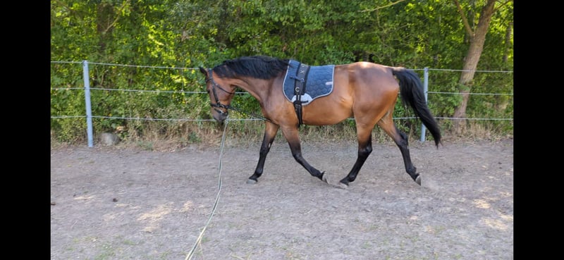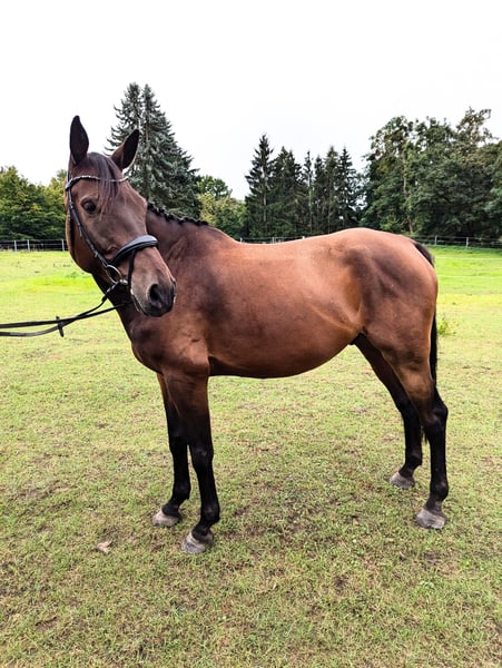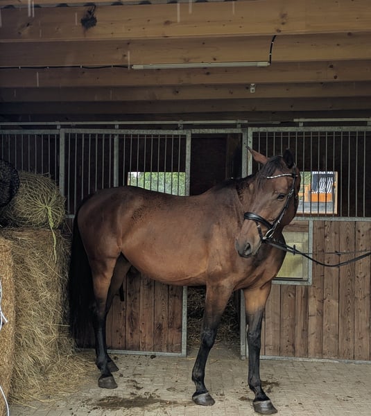 Hola, por este medio buscamos con gran pesar un nuevo compañero para nuestro caballo Mecklenburger de 6 años, "Luzian Renard". Desafortunadamente, no se pueden mantener todos los caballos, por lo que está a la venta. Fue enviado a entrenamiento a los 4 años, pero debido a la falta de tiempo y a una enfermedad que nos impidió continuar su formación, esto no se llevó a cabo. En abril de 2025 comenzamos a trabajar con él en longe y en trabajo en el suelo. También hemos montado en él varias veces. Bajo el jinete, se mueve sin problemas al paso y al trote. Sin embargo, debemos admitir que, debido a la cantidad de animales que tenemos, no podemos dedicarle el tiempo necesario para su formación o continuación de la misma. Es un desperdicio que se quede parado. Lo vendemos más o menos sin entrenar, por lo que lamentablemente no es posible probarlo. Buscamos un nuevo hogar donde pueda seguir siendo desarrollado y desafiado. Luzian está acostumbrado tanto a boxes como a la cría en establo abierto. En verano, está en el prado 24/7. Tiende a toser si se encuentra en un box durante mucho tiempo, por lo que no recomendaríamos una cría únicamente en box. Luzian es un chico cariñoso que siempre quiere agradar. Aprende y comprende muy rápido. Con una altura de 1,74 m, tiene una apariencia imponente y puede acomodar fácilmente a jinetes grandes. Tiene tres maravillosos aires básicos. Conoce al herrador (que viene cada 8 semanas) y al veterinario, a quien solo conoce de las vacunas. No tiene vicios como rearing, morder o patear. Debido a su ascendencia, es interesante para el deporte de salto. Si Luzian ha despertado su interés, no dude en contactarnos también por teléfono al 0176 / 70010213. Para interesados serios, por supuesto, se pueden proporcionar más fotos y videos.