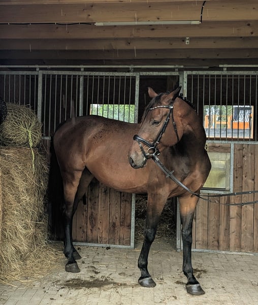 Hello, We are reluctantly looking for a new rider for our 6-year-old Mecklenburg gelding. Unfortunately, not all horses can be kept, which is why our "Luzian Renard" is for sale. He was sent for training at the age of 4, but due to a lack of time, he was not further developed afterwards. About 4 months ago, we started working with him again using lunging and groundwork, but we have to admit that we unfortunately cannot manage this time-wise. He is simply too good to just stand around. We are selling him as more or less untrained, so a trial ride is unfortunately not possible. We are looking for a new home where he can be further developed and challenged. Luzian is familiar with both box and pasture housing. In summer, he is out on pasture 24/7. He tends to cough after a while if he is kept solely in a box, so we would not recommend pure box housing. Luzian is a cuddly and affectionate guy who always wants to please. With a height of 1.74m, he has an impressive appearance and can easily accommodate larger riders. He has three fantastic basic gaits. He is familiar with the farrier and has no vices such as rearing, biting, or kicking. Due to his lineage, he is also interesting for show jumping or eventing. His father is Lezard 7, who goes back to Cor de la Bryère / Landadel / Landgraf. If Luzian has piqued your interest, feel free to get in touch.