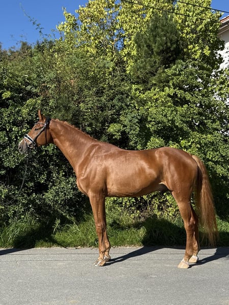 Top ausgebildete Fuchs Wallach mit drei hervorragenden GGA,geeignet für Dressur Viereck. Leichtrittig, geeignet für Profi wie auch für ambitionierte Anfänger.Brav und unkompliziert im Umgang,sehr lieb und menschbezogen. L-fertig (wechseln angefangen) Gelände sicher Top gesund
