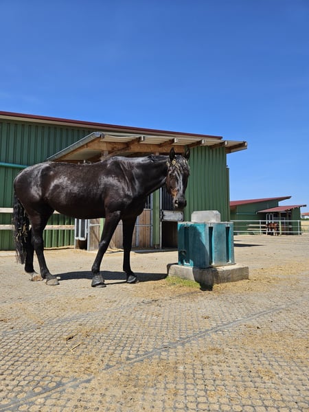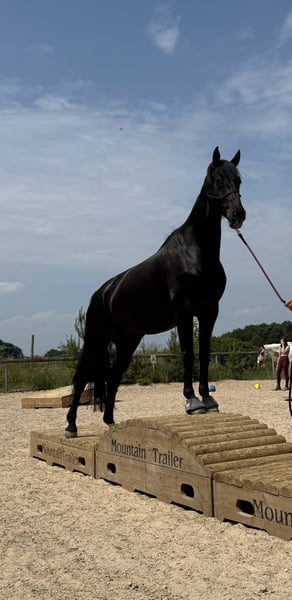 I am offering my 9-year-old horse into the best hands with a heavy heart. He has a suspensory ligament injury in the hind leg and is lame at the trot, so he is not suitable as a riding horse. At the walk, everything is possible. He is approximately 17.2 hh tall. Currently, he lives in an active stable with a gelding herd and gets along very well. He is also very people-oriented and absolutely uncomplicated in handling. He is brave, calm, and traffic-safe. Mentally, he enjoys mental stimulation and is familiar with equikinetics, groundwork, tensegrity training, and more, but he also loves relaxing days with his friends in the pasture. Otherwise, he is healthy, farrier- and veterinarian-friendly, and knows and likes dogs. He will only be placed in the very best hands; price is secondary. A loving home is a must, ideally as a companion horse or for calm ground work. I could also see him as a therapy horse. If you are seriously interested and have suitable space, I look forward to hearing from you.