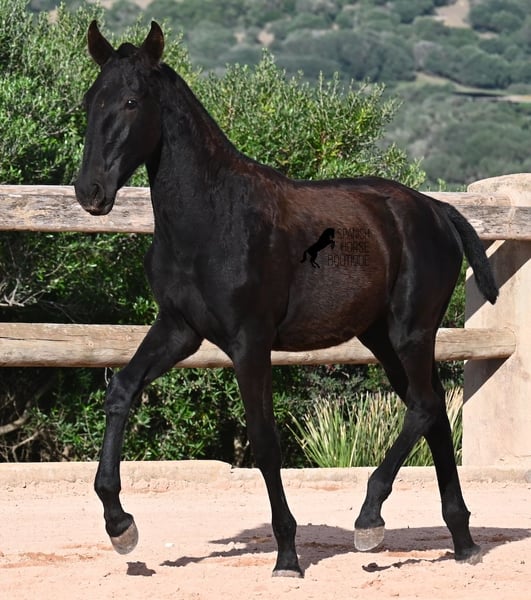 This foal, born in February 2025, is a purebred Menorquín mare with a very distinctive head that makes her stand out from the crowd. Her sire is an impressive 173 cm tall and is a recommended stallion for breeding due to his outstanding competition results. He has undoubtedly passed on this potential and stature to his daughter. Her long legs already indicate that she will grow into a tall lady, and she carries these legs with a lot of energy, impulsion, and elegance! Later, she will be attractive for many disciplines. She has an absolutely charming character. Very calm and open, she is likely to become a cuddly lady in the future. Her daily routine takes place in a pony kindergarten, where she is kept in robust conditions on rocky ground and in a harsh climate. Besides playing with her pony friends, she also regularly learns the basics of foal handling, and she is cared for very lovingly. Videos and pedigree available upon request. Her location is Menorca. I am happy to organize a foal health check, transport, or even her travel arrangements if you wish to visit her in person. Details can be discussed on my website or in a conversation. Greetings from Spain