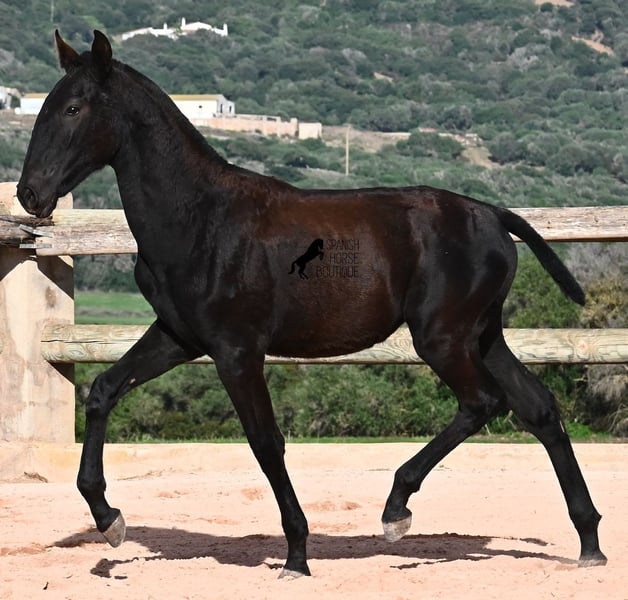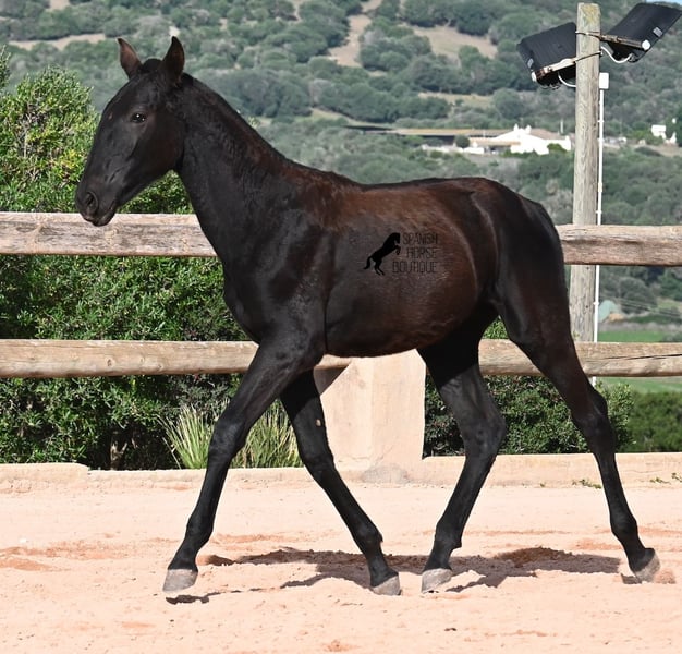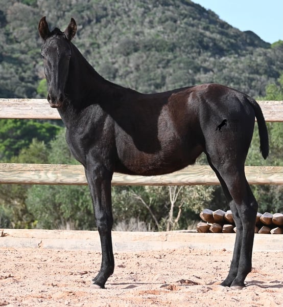 Esta potra pura raza nacida en febrero de 2025, de Menorca, tiene una cabeza muy particular que la hace destacar por encima de su tamaño. Su padre mide impresionantes 1,73 m y es un semental recomendado para la cría debido a sus resultados en competición. Sin duda, ha transmitido ese potencial y esa altura a su hija. Sus largas patas ya muestran que será una gran dama, y las luce con mucha gracia, impulso y elegancia. Sin duda, será atractiva para muchas disciplinas en el futuro. Tiene un carácter encantador. Es muy tranquila y abierta, por lo que seguramente se convertirá en una yegua muy cariñosa. Su día a día transcurre en un poney park, en una crianza totalmente robusta sobre terrenos rocosos y en un clima áspero. Además de jugar con sus compañeras, también realiza actividades básicas de potro y recibe un cuidado muy amoroso. Videos y pedigrí disponibles bajo petición. Su ubicación actual es Menorca. Con gusto puedo organizar una revisión de potros en el lugar, transporte o incluso su viaje, si desea venir personalmente a verla. Para más detalles, puede consultar mi página o contactarme directamente. Saludos desde España