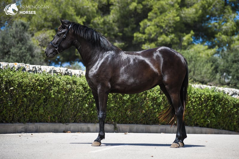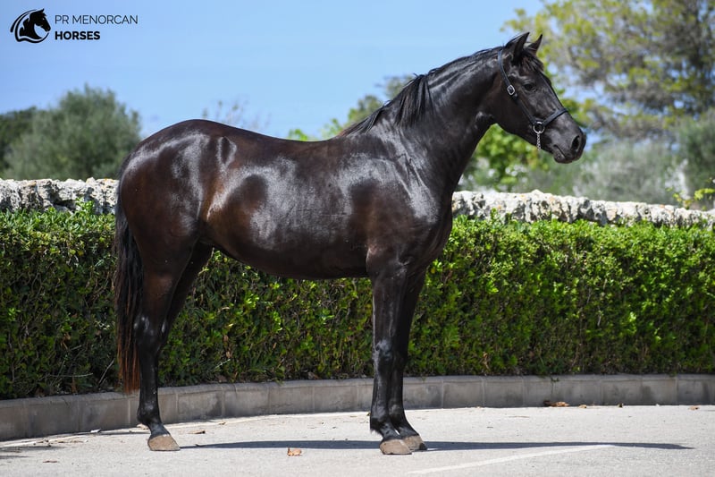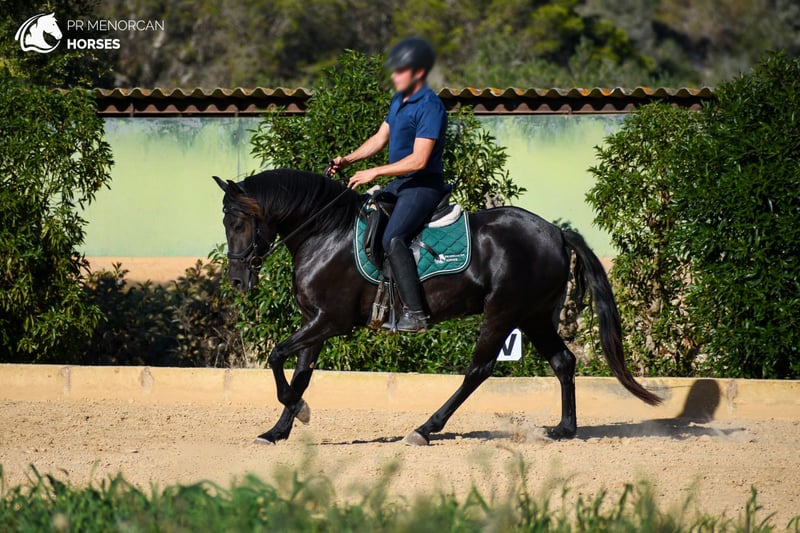 This lovely Pura Raza Menorquina filly, born in April 2022, could be yours! She’s completely black, and while she might be on the smaller side (currently around 150 cm, expected to reach 153 cm when fully mature), she more than makes up for it with her great movement, energy, and character. Coming from old, sportier Menorcan bloodlines, she could be an excellent choice for someone looking for a compact horse with talent for dressage, eventing, working equitation, or shows. Of course, like most Menorcan horses, she’d also make a fantastic partner for trail riding. As she is still young, she’s only had light training, ridden for about four weeks, with basic walk, trot, and canter established. She is now back in the field to continue growing and developing. She has a curious, sensitive, and energetic personality, a type that truly connects with her person once trust is built. Currently, she lives in a paddock with access to a shelter alongside other mares her age, enjoying her freedom to run, play, and learn herd manners naturally. You’re welcome to come visit her in person, or we can handle the entire purchase process online. 📋 Vet check available. 🚛 We organize all documentation and transport. 📍 Located in Menorca. 💬 DM us for more information and videos! Best regards,