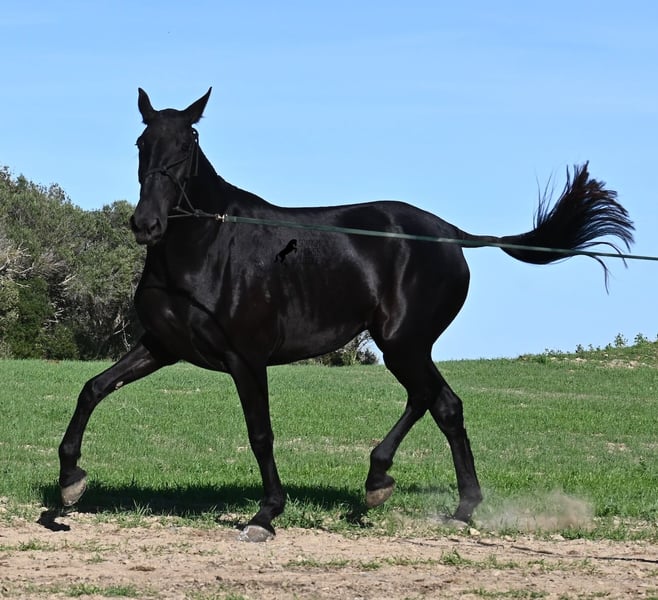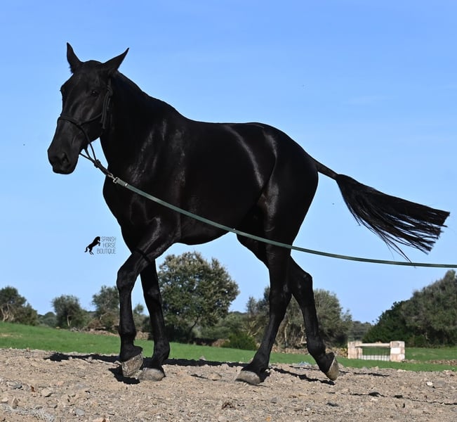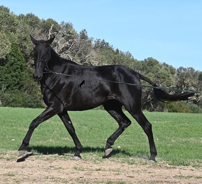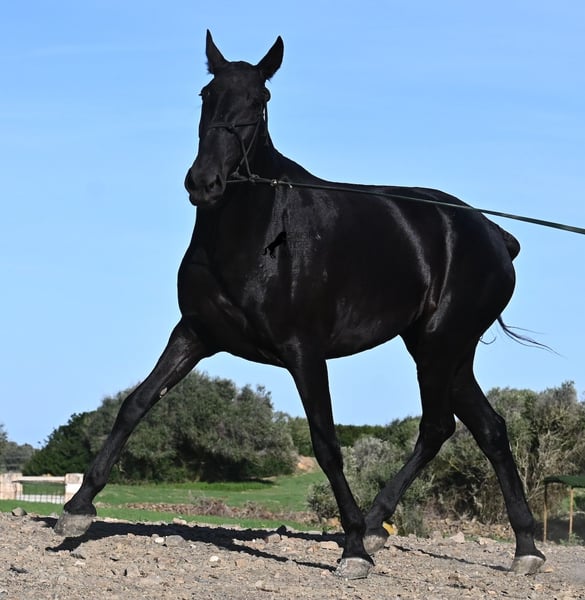 This 2019-born purebred Menorquina mare captures the hearts of breed enthusiasts for many reasons! She is a RECOMENDADO mare, meaning she is not only licensed but also classified as a breed improver—a distinction achieved by only a few mares. Her dam is a breed champion, and her sire was honored as the best stallion of the breed (top sire). This prestigious lineage is immediately noticeable in her conformation, especially in her striking head, which is a hallmark of her famous father. What is also rare is her size, as she measures an impressive 16.1 hands, a height reached by very few mares of this breed. She moves gracefully and light-footed, not heavy or sluggish, which is remarkable for such a large-breed horse. She has been kept 24/7 in robust conditions on very rocky terrain and in a harsh climate, making her highly resilient. Lunging has been somewhat challenging for her, especially given the rustic farm environment, but she is likely to become a good riding horse if trained to be ridden. She has foaled a colt, proving her qualities as a mother very successfully. There is an option for a pre-purchase exam on site. She is loading well and behaves well around people, but as a pure breeding mare, she has not yet been ridden. An absolutely top-quality mare in many respects, offered at a sensational price for her caliber! Videos and pedigree details are available upon request. Her location is Menorca. I am happy to organize an ultrasound, transport, or her journey if you wish to view her in person. Further details can be found on my page or through a direct conversation. Greetings from Spain