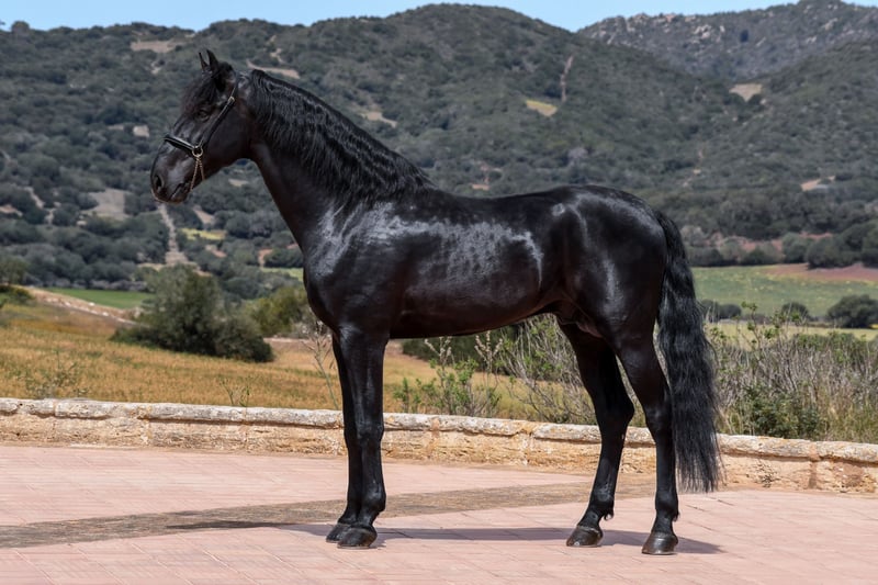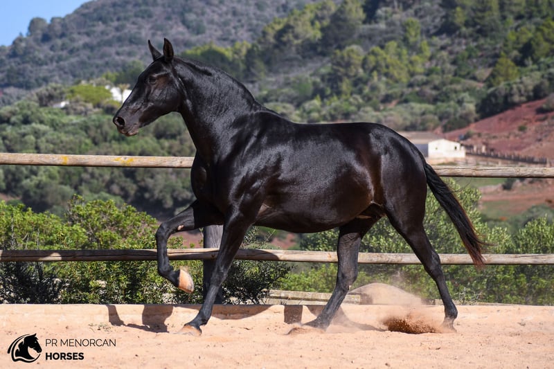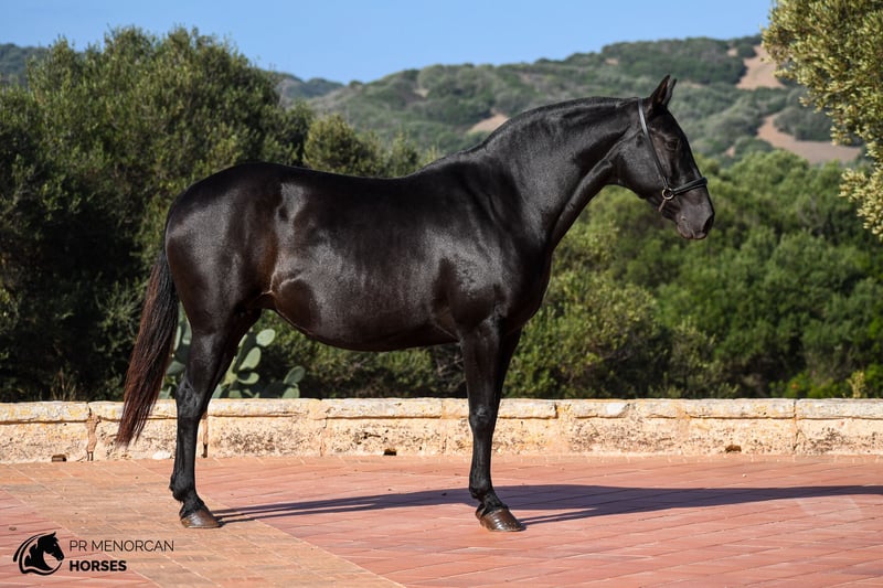 resenting this exceptional 2018 Purebred Menorcan mare, standing at 152 cm with a stunning black coat. In her pedigree, you’ll find breed champion stallions and an especially renowned stallion known for producing award-winning offspring recognized for both morphology and movement. This makes her a compelling choice for a broodmare with excellent genetic potential. She is currently in foal to a magnificent stallion known for his impressive size and has awards in both conformation and movement, promising a well-bred foal with both physical beauty and talent. With a compact and sturdy build, she’s versatile and functional. Beyond breeding, she could excel in various disciplines with some additional training, including dressage, driving, working equitation, or as a reliable trail companion. Menorcan horses are famous for their versatility, and this mare embodies these traits beautifully. This mare is calm, easy to handle. She is halter-trained, lunges well, is great with the farrier, and lives in a paddock with other young mares where she’s well-socialized and has a steady disposition. Regularly dewormed and fully prepared for her new journey. We organize the vetting and handle all necessary documentation and offer worldwide transport. We can do the whole process online if you can't come to Menorca. Contact Us for More Information and Videos Located in Menorca Cheers!