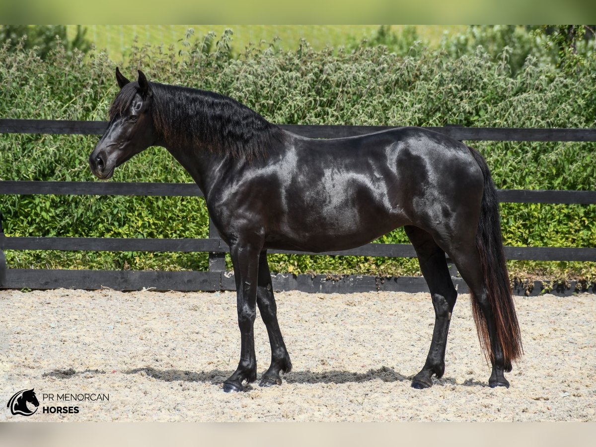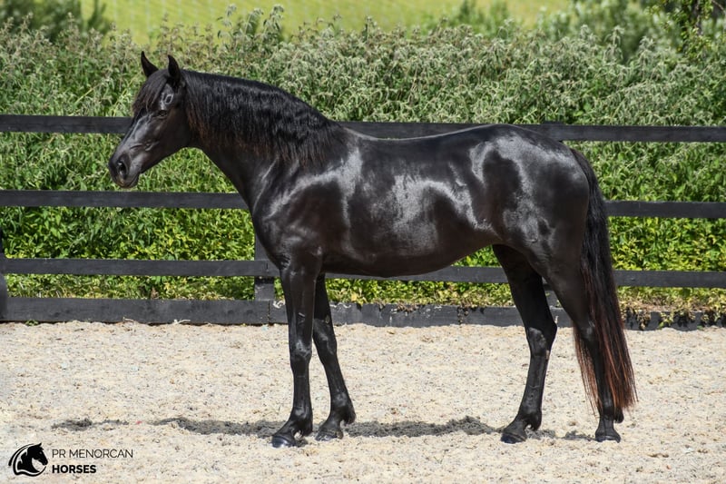 Jument Pura Race Menorquina née en 2018, entièrement noire et mesurant 1,60 m au garrot. Issue de lignées anciennes avec des champions de race. Apte à la reproduction, elle a déjà eu trois poulains et est une mère exceptionnelle. Dotée d’une base solide en dressage, elle a été monté légèrement et reprend actuellement le travail. Répond très bien à la longe et aux longues rênes. Elle nécessite un cavalier sensible qui sait gagner sa confiance : au début, elle peut être réservée, mais une fois acceptée, elle se donne entièrement. Facile à manipuler : elle se laisse attraper, guider, charger dans une remorque, attacher, brosser, et elle est bonne avec le maréchal-ferrant. Habituée au tapis de marche, elle peut vivre aussi bien en box qu’en liberté, et s’adapte parfaitement à la vie en groupe (avec des juments ou des hongres). Sociable avec les chiens et les animaux de la ferme. Idéale pour ceux qui recherchent une jument noble, polyvalente, et dotée de grandes qualités aussi bien comme reproductrice que comme partenaire de travail. Située dans le Kent, Royaume-Uni – Transport et gestion disponibles à l’international. Contactez-nous pour plus d’informations ou pour organiser une visite. Cordialement !