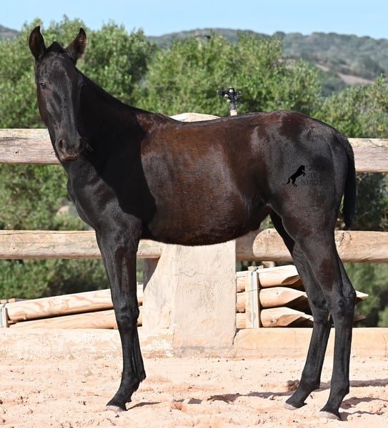 This foal, born in February 2025, is a purebred Menorquín mare with a very distinctive head that makes her stand out from the crowd. Her sire is an impressive 173 cm tall and is a recommended stallion for breeding due to his outstanding competition results. He has undoubtedly passed on this potential and stature to his daughter. Her long legs already indicate that she will grow into a tall lady, and she carries these legs with a lot of energy, impulsion, and elegance! Later, she will be attractive for many disciplines. She has an absolutely charming character. Very calm and open, she is likely to become a cuddly lady in the future. Her daily routine takes place in a pony kindergarten, where she is kept in robust conditions on rocky ground and in a harsh climate. Besides playing with her pony friends, she also regularly learns the basics of foal handling, and she is cared for very lovingly. Videos and pedigree available upon request. Her location is Menorca. I am happy to organize a foal health check, transport, or even her travel arrangements if you wish to visit her in person. Details can be discussed on my website or in a conversation. Greetings from Spain