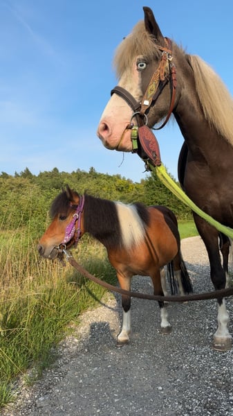 Wegen nicht Zahlung, sucht die kleine doch noch ein neues Zuhause. Aufgrund gesundheitlichen Gründen meinerseits, gebe ich nun die eigene Pferdehaltung auf Deswegen steht meine Minishetty Stute nun zum Verkauf. Lupi ist eine 12 Jahre alte, ca. 0,86m große Minishetty Scheckstute. Seit fast 12 Jahren bei mir. Kennt so ziemlich alles was man mit Pferd machen kann. Sie ist ein totales Zirkuspony. Sie ist eher der gemütliche Typ, kann aber je nach Laune auch schon mal Gas geben. Sie ist 1-&2- spännig gefahren, läuft außerdem vorm Schlitten, kennt Reitplatz abziehen, läuft im Gelände mit als Handpferd. Auch am Fahrrad läuft sie super mit. Kennt natürlich langzügel Arbeit überall & lässt sich auch brav longieren. Freispringen & oder an der Hand macht sie auch super. Sie springt super gerne u sehr gut. Einspännig vorm Sulky oder Kutsche läuft sie nicht gerne. Deswegen habe ich sie seit ein paar Jahren nicht mehr angespannt. Sie läuft aber jedes Jahr vorm Schlitten im Winter & hat auch bis vor kurzem immer den Platz abgezogen. Freiarbeit u Zirzensik macht sie super gerne. Sie kann einige Tricks wie steigen, ablegen auf jedem Untergrund & überall, springt Capriole, Dreh dich, smile, Zirkeln, rückwärts frei folgen, einparken, spanischen Gruß & Schritt, Nein sagen, Kompliment, Bergziege, Podestarbeit in allen Varianten & Piaffe ist angefangen. Ebenfalls kennt sie alles an Gelassenheitstraining, Shootings mit Nebelmaschine, Fackeln Kostümen, Flügeln etc. Bemalen mit Fingerfarben & steht super artig beim putzen. War schon auf sämtlichen Umritten mit dabei, auf Gelassenheitsprüfungen ( Note 1) Ausflüge zu Gewässern, Burgen usw. Natürlich Schmiede u Verladefromm. Läuft Barhuf. Sie kennt Box u Offenstallhaltung, steht im Offenstall u ist verträglich mit alles u jedem. Bleibt auch problemlos alleine. Lupi ist sehr leicht zu händeln aber ist einfach eine ministute (Diva) die immer wieder mal klare Ansagen braucht. Sonst macht sie i-wann was sie will & würde mit Sicherheit auch zwicken. Sie ist super leicht & einfach zu händeln. Sie ist nicht geritten! Equitenpass natürlich vorhanden. War regelmäßig beim Schmied & wurde entwurmt. Tetanus geimpft ebenfalls. Sie ist gesund & munter, keine Rehe oder Ekzem! Auch ist sie E-Zaun sicher. Jedes Jahr vorsichtig angegrast worden & war stundenweise auf dem Gras. Einen großen Teil des Zubehörs gebe ich mit dazu! Weiteres Zubehör kann separat erworben werden. Videos habe ich & können bei ernsthaften Interesse natürlich gesendet werden. Anschauen ist jederzeit nach Absprache möglich! Da es sich hierbei um ein Lebewesen handelt, sind dies lediglich subjektive Eindrücke von mir und keine zugesicherten Eigenschaften des Pferdes. Privatverkauf!