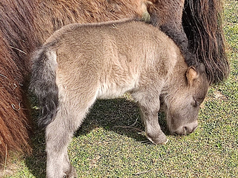 Dit is ons merrieveulen Weinberg's Lillyfee. Ze is geboren op 4 april 2025. Ze krijgt papieren van het ZfdP. Ook Lillyfee kon de fokkeuringsrechter van zich overtuigen en kreeg de veulenpremie. Vader is onze hengst Turmalin vom Buchberg Isabell Buckskin, met een schofthoogte van 80 cm. Hij is voorlopig op ons verzoek in hengstenboek 2 ingeschreven. Volgend jaar zullen we hem voorstellen voor de keuring. Moeder is onze Laura, 78 cm en zij is bruin. Lillyfee lijkt een Smoky Black te zijn. Dit kan de nieuwe eigenaar laten testen. Ook groeit zij op in een kudde. Lillyfee mag per direct haar koffertje pakken. Lillyfee kan graag bezocht worden voor een persoonlijke kennismaking. Bij interesse kunt u gerust contact opnemen voor meer informatie.