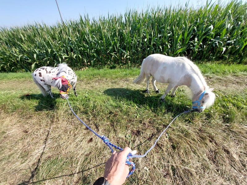 Ich bin eine shettyliebende Frührentnerin und suche auf diesem Weg eine/n Pferde/Shettyerfahrene/n erwachsene/n Gleichgesinnte/n, die/der gerne die Freizeit mit diesen kleinen intelligenten Fellnasen verbringt. Ich selbst kann aus gesundheitlichen Gründen nicht mehr ganz so aktiv sein, wie die drei Kleinen es gerne hätten. Alle sind wohlerzogene Wallache und gehen sehr gerne spazieren oder werden zum Teil auch gefahren oder können auch Zirkuslektionen. Sie lieben es beschmust zu werden und irgendwie Zeit mit ihrem Zweibeiner zu verbringen. Wenn es jemand gibt, der gerne seine Freizzeit draußen, 1-2x die Woche, in der Natur mit Vierbeiniger Begleitung verbringt, ob selbständig oder mit mir gemeinsam, der ist hier genau richtig. Die Shetties kennen die Bodenarbeit, Longe und die Arbeit an der Doppellonge, die Freiarbeit im Roundpen ist auch eine gern genommene Abwechslung. Auch Zirkuslektionen sind bekannt oder man hat Lust und Freude neue einzustudieren. Es können Kutschfahrten oder mit dem Packsattel Wanderungen gemacht werden. Die 3 Kleinen sind auf jeden Fall sehr vielseitig und freuen sich auf jede zusätzliche Beschäftigung. Viele Grüße Anja :-) Die Shetties stehen in Vollpension bei Höpfingen im Offenstall, ich selbst komme aus TBB und man könnte auch Fahrgemeinschaften bilden