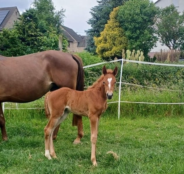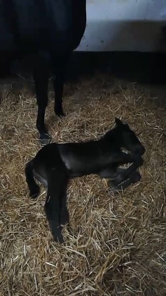 Gerrit is a stallion of top class with his lineage. Both of his offspring have already convinced me, so I intend to have him approved soon by the special breeding association for Missouri Foxtrotters in Europe. Gerrit comes from the pairing of the most used and best-approved breeding stallion Gunslingers Velvet Vegas in the special breeding association for Missouri Foxtrotters in Europe and a Jester's Charming Legend mare. Jester's Charming Legend is a top stallion from the USA who has sired numerous world champions, reserve world champions, and champions. Gerrit has very expansive gaits and a pronounced rhythm/beat. He regularly demonstrates his breed-specific gaits, Foxtrot and Flat Foot Walk, in the pasture (natural foxtrotter). Videos 3 and 4 showcase his natural, completely untrained breed-specific gaits at the age of 2 years and 3/4 months. Gerrit already has 2 offspring that have greatly impressed me. Terms like great, wonderful, or dreamy are not used by me, as they lack objective significance. Pictures 6 and 7 show his two young filly offspring. More about this can be found at https://www.facebook.com/photo?fbid=1383389949757617&set=pcb.1383394859757126 Video 1 shows that even at the age of 5 days, he is brave and cool-tempered. Video 2 shows him in the peaceful stallion herd. 3 of them have already covered in natural breeding. See also my homepage at http://www.taunus-foxtrotter-ranch.net