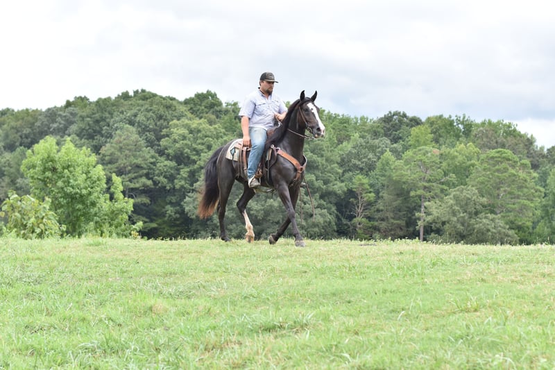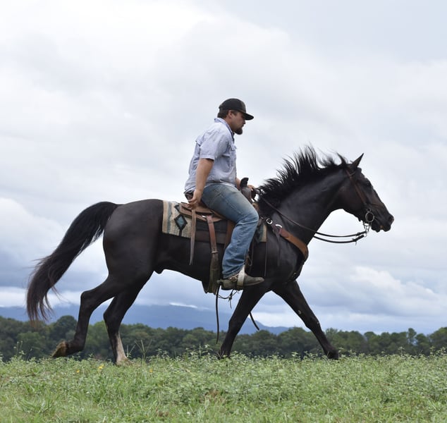 ♦️ 𝐭𝐡𝐞 𝐒𝐞𝐩𝐭𝐞𝐦𝐛𝐞𝐫 𝑺𝒆𝒍𝒆𝒄𝒕 ♦️ Happening now thru MONDAY | SEPTEMBER 8th - Available EXCLUSIVELY on HorseBid's website! For more details and to register visit: www.Horsebid.com CONSIGNOR CONTACT: Brody price 423-716-0323 LOCATION: Cleveland, TN BREED: Missouri Foxtrotter REGISTERED: No COLOR: Black HEIGHT: 15.1 AGE: 7 GENDER: Gelding Blackjack the Missouri Foxtrotter Gelding Meet Blackjack a charismatic 7-year-old Missouri Foxtrotter gelding with a big personality and an even bigger heart! He is looking for a rider who will appreciate his smooth gaits and gentle nature. - Age: 7 years old - Breed: Missouri Foxtrotter - Height:15.1 Blackjack is a smooth and comfortable ride, with a classic Foxtrot gait that's perfect for trail riding, pleasure riding, or just enjoying a leisurely ride through the countryside. He's got a lot of energy and loves to move out, but he's also happy to slow down and enjoy the scenery. He's suitable for just about any level rider but if you want to go ride 7 days a week he will go or ever 6 months he is all ways up for it! Blackjack is a bold and confident gelding with a big personality. He's got a lot of charm and charisma, and he loves to be the center of attention. He's friendly and outgoing, and he loves to please his rider. If you're looking for a horse that's got a whole lot of heart, Blackjack is the perfect match. He's a great fit for riders who are looking for a challenge and who can appreciate athleticism or just a countryside ride or through the pasture, checking cows and fence he is suitable for all of it. he'll be loyal and loving companion for many years to come. - Smooth Foxtrot gait - Spirited and confident personality - Friendly and outgoing demeanor - Suitable for intermediate to advanced riders