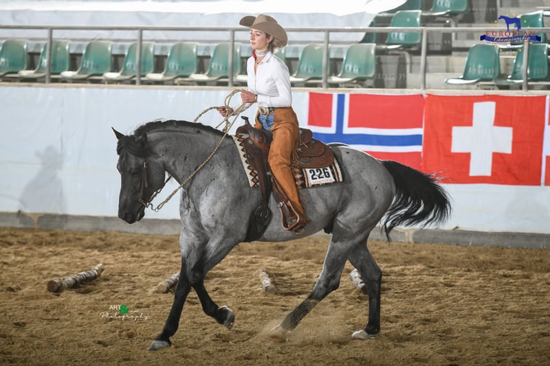 DU RIDER INTE FÖRRÄN DU RIDER EN HANCOCK .... Detta är en öppen hemlighet bland amerikanska ranchägare. I USA föds de upp för "det dagliga arbetet på ranchen" och för tävlingar som Team Roping och Ranch Versatility. En extremt sällsynt blodslinje i Europa som står för uthållighet, robusthet, starka nerver, extremt starka ben och hårda hovar. Vår MJM Saltys Blue Ezra är en värdig representant för denna blodslinje. Vi importerade honom från USA för att göra dessa ursprungliga egenskaper hos en Quarter tillgängliga igen i tysktalande länder. Som avkommorna hittills visar är han också idealisk för att stärka grunden och nerverna hos prestationsavlade Quarter-ston ;-) . Hans längd är 156 cm, han är homozygot för Black och för Roan. Naturligtvis är han Five Panel n/n, liksom MYH1 n/n och OLWS n/N Ezra har framgångsrikt visats i Ranch Riding, bland annat i finalen av AQHA European Championship Open i Kreuth. Täckt av färsk, kyld och fryst sperma. Stuteriavgift: 950,00 Euro + 100 Euro extra kostnader för stuteriet per seminbeställning + ca 35 Euro frakt (fraktpriset gäller endast kyld sperma och inom Tyskland! Vänligen fråga personligen om extra kostnader för europeisk frakt! ). Early bird-pris fram till slutet av oktober: 800,00 Euro Early bird-pris fram till slutet av december: 850,00 Euro Ytterligare information på vår webbplats eller på FB under hans namn.