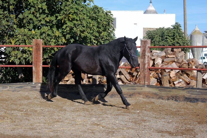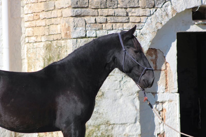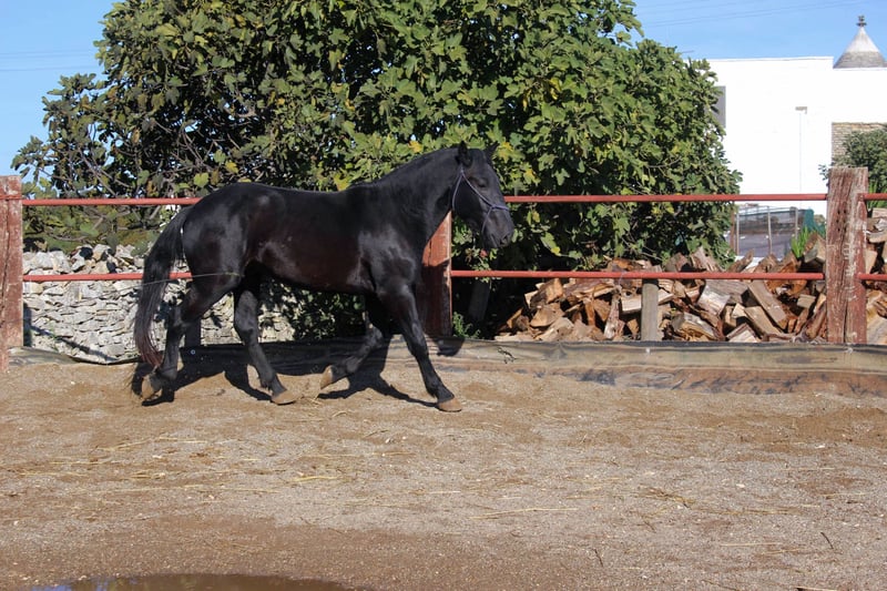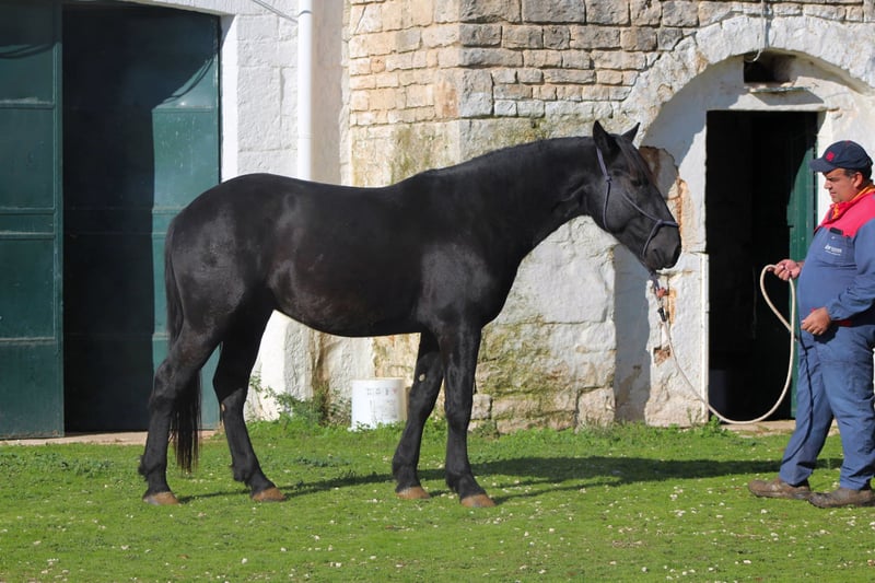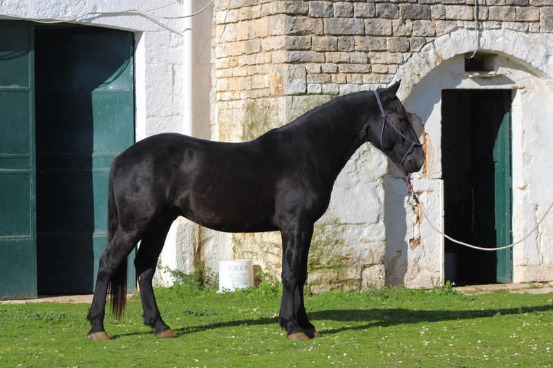 Baroque yet light-footed, blessed with a wonderful affectionate character—that's Tananai. Tananai grew up alongside some friends within the herd of the breeder from whom we are now privileged to offer him. He is familiar with life on a traditional Italian farm, which means dogs, guard geese, cows, tractors, and more dogs. He has professionally learned the basics of young horse training and is now looking forward to taking the next steps in his education together with you. Currently, Tananai is not yet gelded but can be castrated upon request, which is included in the price. Born in 2023, his estimated final height is over 16.1 hands. If you would like to know more about Tananai, we look forward to your message. X-rays are available and, upon serious interest, can of course be viewed. We also plan everything else for you—clinical pre-purchase examination, handling of the sales contract, transport to your home stable, and more. Cavallo Murgese.de – on behalf of and in cooperation with the Italian Murgese Association A.N.A.M.F.