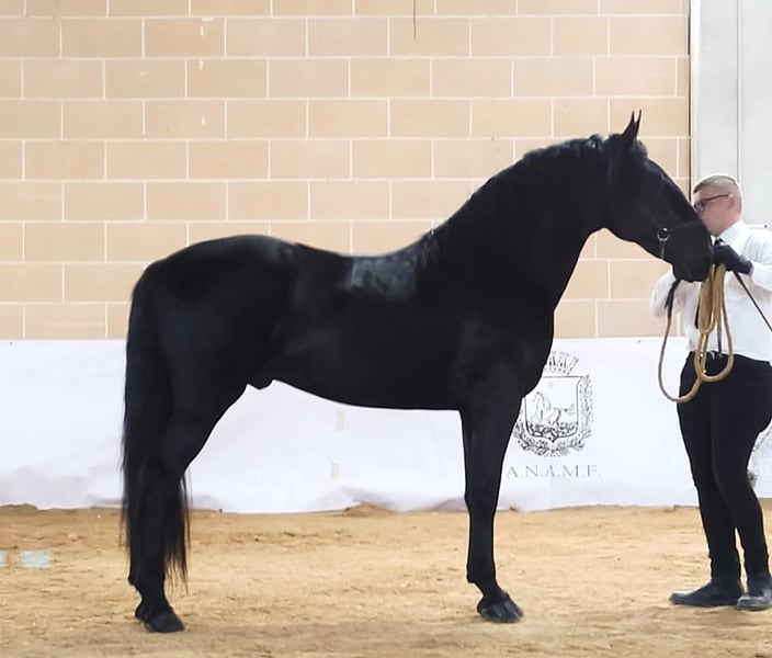 Tamigi delle Lame The price includes the cost of castration performed locally in Italy. Tamigi has been lovingly raised and is being prepared for his future with patience, calmness, and expertise. He has a solid foundation in basic young horse training, remains very relaxed, and handles stressful situations with ease. He is currently approximately 16.1 hh, with an estimated final height of around 16.2 hh. Tamigi is a typical representative of his baroque breed, inheriting many qualities from his sire. His temperament is characteristic of a young horse: curious, open-minded, and sometimes a bit questioning. If you would like to learn more about Tamigi, we look forward to your message. X-ray images are available and can be viewed upon serious interest. We will also handle all further arrangements for you – clinical pre-purchase examination, processing of the sales contract, transportation to your home stable, and more. Cavallo Murgese.de – on behalf of and in cooperation with the Italian Murgese Association A.N.A.M.F.