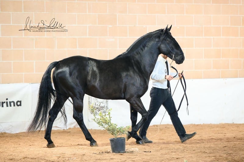 I cost of castration is already included in the price. Santiago belongs to the lighter, yet still visually baroque type of Murgesen. He is currently 155 cm tall, and we estimate his final height to be around 158 cm. The young horse has a good foundation, with a nice topline and a comfortable, well-set neck. Overall, he is a typy representative. He is also characterized by a very sweet temperament—open, friendly, and curious. The young stallion was born and raised in the Vallenza breeding area. He was kept outdoors according to breed standards until he was two years old, when he moved into stables and was gradually accustomed to humans. Santiago knows all the basics he should at his age. The young horse’s ABC is no longer unfamiliar, and he consistently shows willingness to learn and a positive attitude during work in the round pen. Would you like to meet Santiago in person? He is currently still in his homeland in Apulia—we are happy to arrange a visit for you. X-ray images are available, and upon request, he can be castrated directly at the breeder’s facility. A clinical health check (AKU) can also be organized. We will also take care of everything else for you—castration (included in the price), handling of the purchase contract, transportation to your home stable, and more. We look forward to hearing from you! Additional photos and a video of him in motion are available upon request. – on behalf of the Italian Murgesen Association A.N.A.M.F.