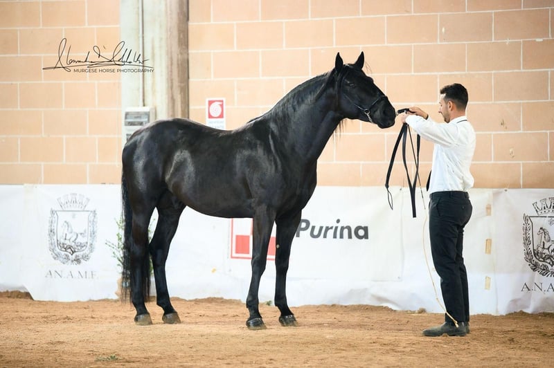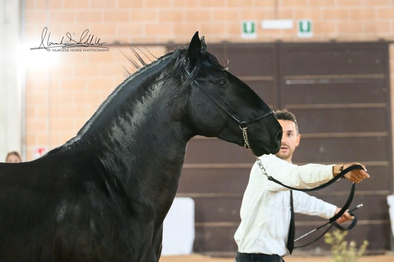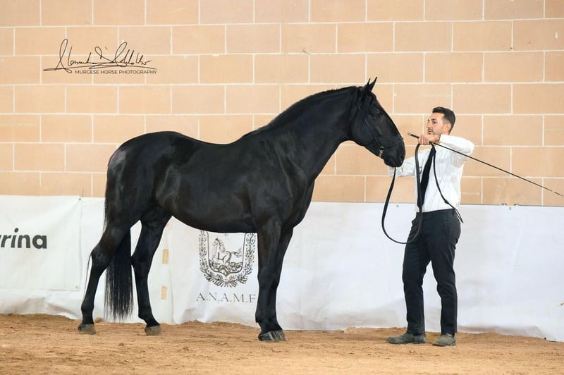 The cost of castration is already included in the price. Santiago belongs to the lighter, yet still visually baroque type of Murgesen. He is currently 15.1 hh, and we estimate his final height to be around 15.3 hh. The young colt has a good foundation, with a nice topline and a comfortable, well-shaped neck. Overall, he is a typy representative of his breed. He also has a very sweet temperament—friendly, open, and curious. This young stallion was born and raised in the Vallenza breeding program. He was kept outdoors according to breed standards until he was two years old, when he moved into stables and became accustomed to humans. Santiago knows all the basics that are expected at his age. The young horse’s ABC is no longer unfamiliar, and he consistently shows willingness to learn and a positive attitude during work in the round pen. Would you like to meet Santiago in person? He is currently still in his home region in Apulia—we are happy to arrange a visit for you. X-ray images are available, and upon request, he can be castrated directly at the breeder’s facility, along with a clinical health check. We will also organize everything else for you—castration (included in the price), handling of the sales contract, transport to your home stable, and more. We look forward to hearing from you! Additional pictures and a movement video are available upon request. — on behalf of the Italian Murgesen Association A.N.A.M.F.