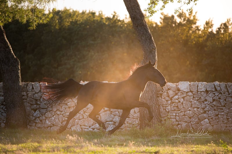 Castration is already included in the purchase price! Salvador P.M. is one of those horses we have had the pleasure of accompanying almost since birth. Raised on the large pastures of his breeder, he moved into the stables at the beginning of the year to prepare him for his future life. As is customary in this breeding, this is done calmly and at the horse’s own pace. He has mastered the basics of young horse training, and further training sessions are carried out in an age-appropriate manner. Salvador cooperates well and shows himself to be curious and open-minded. Salvador is very typical of his breed, with a touch of elegance and a pretty, not overly refined head. He is very sweet and friendly, yet still has some spirit, making him an ideal future companion for an engaged family or a dedicated leisure rider. He can also be well-suited for classical riding – he generally has good movement. He is currently approximately 154 cm (15.1 hh), with an expected final height of around 160 cm (15.3 hh). Salvador is still a stallion, but can be castrated upon request (already included in the price). We look forward to your inquiries – further information and videos are of course available. Would you like to meet Salvador in person? Join us on a journey to his homeland in Apulia. X-rays are available for viewing upon serious interest. We will also handle everything else for you – clinical pre-purchase examination, contract processing, transportation to your home stable, and more. – on behalf of the Italian Murgesen Association A.N.A.M.F.
