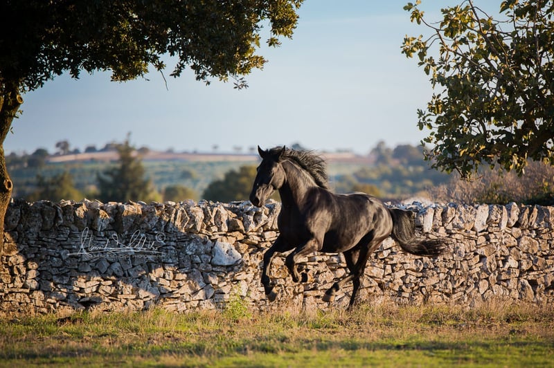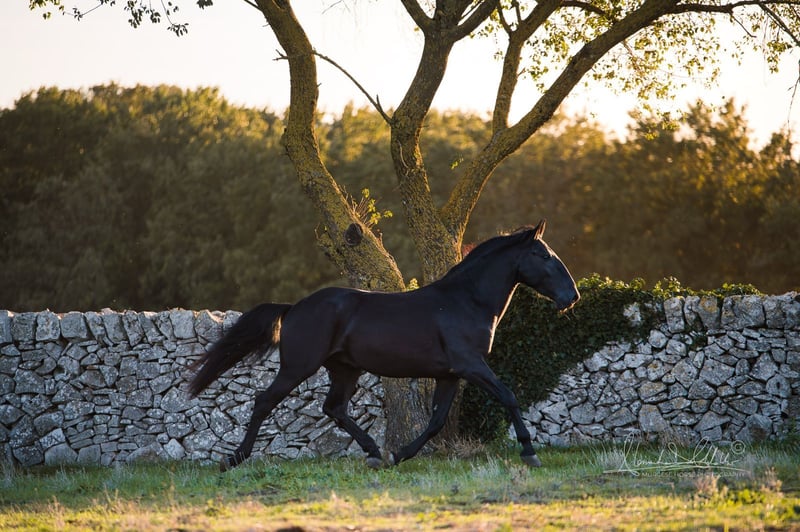 La castrazione è già inclusa nel prezzo di acquisto! Salvador P.M. è uno di quei cavalli che abbiamo avuto il privilegio di seguire fin dalla nascita. Cresciuto nei grandi pascoli dell'allevatore, è arrivato all'inizio dell'anno nelle scuderie per prepararlo alla sua vita futura. E, come è consuetudine per questo allevamento, ciò avviene in tranquillità e al ritmo del cavallo. L'ABC dei puledri è acquisito e le ulteriori sessioni di addestramento vengono svolte in modo adeguato all'età. Salvador collabora bene e si mostra curioso e aperto. Salvador è molto tipico per la sua razza, con un tocco di eleganza e una bella testa non troppo esagerata. È super affettuoso e amichevole, ma porta con sé anche un po' di spirito, il che lo rende il compagno ideale per una famiglia impegnata o un cavaliere di tempo libero. Possiamo immaginarlo bene anche nell'equitazione barocca - è generalmente dotato di buone movenze. Attualmente misura 154 cm - la sua altezza finale è stimata intorno ai 160 +/- cm. Salvador è ancora intero, ma su richiesta può essere castrato (già incluso nel prezzo). Siamo felici di ricevere richieste - ulteriori informazioni e video sono naturalmente disponibili. Vuoi conoscere Salvador di persona? Allora accompagnaci in un viaggio nella sua terra d'origine, la Puglia. Porta con sé anche le lastre radiografiche, che sono consultabili in caso di interesse serio. Inoltre, pianifichiamo tutto il resto per te - visita clinica pre-acquisto, gestione del contratto di acquisto, trasporto nel tuo maneggio, ecc. - per conto dell'associazione italiana dei Murgesi A.N.A.M.F.