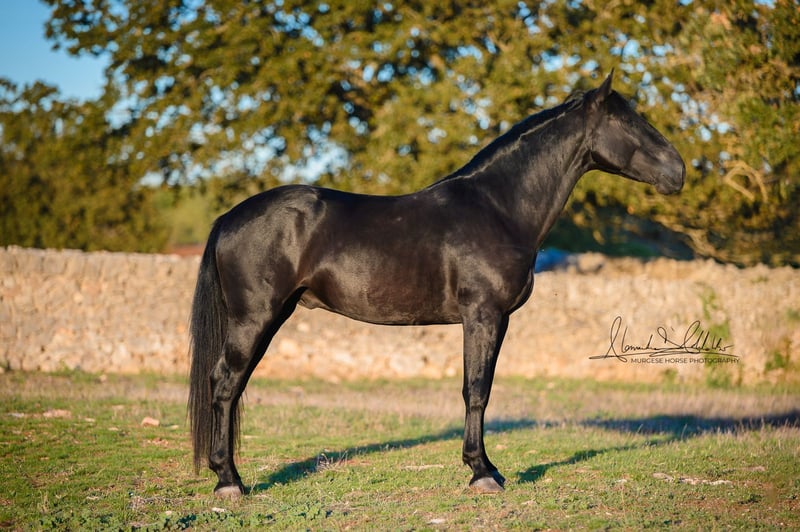 Castratie is al inbegrepen in de aankoopprijs! Salvador P.M. is een van die paarden die we bijna vanaf de geboorte hebben mogen begeleiden. Hij is opgegroeid op de grote weiden van de fokker en kwam begin dit jaar in de stallen om hem voor te bereiden op zijn verdere leven. En voor deze fokkerij gebeurt dat op een rustige manier en in het tempo van het paard. De basis van de jonge paarden is gelegd en de verdere training wordt leeftijdsgericht voortgezet. Salvador doet netjes mee en toont daarbij nieuwsgierigheid en openheid. Salvador is zeer typisch voor zijn ras, met een vleugje elegantie en een mooi, niet te overdreven hoofdje. Hij is heel lief en vriendelijk, maar brengt toch veel esprit mee, wat hem tot een ideale toekomstige metgezel maakt voor een betrokken familie of een enthousiaste recreatieruiter. Ook in de barokke dressuur kunnen we hem goed voorstellen – hij beschikt over goede bewegingen in het algemeen. Hij is momenteel 154 cm hoog – zijn uiteindelijke maat wordt geschat op ongeveer 160 cm. Salvador is nog hengst, maar kan op verzoek gecastreerd worden (al inbegrepen in de prijs). We kijken uit naar vragen – meer informatie en video’s zijn uiteraard mogelijk. Wil je Salvador persoonlijk ontmoeten? Neem dan mee op reis naar zijn thuisland Apulië. Hij brengt ook röntgenfoto’s mee; bij serieuze interesse zijn deze in te zien. Daarnaast regelen wij alles voor jou – klinisch aankooponderzoek, afhandeling van het koopcontract, transport naar jouw thuisstal, enzovoort. - namens de Italiaanse Murgesenvereniging A.N.A.M.F.