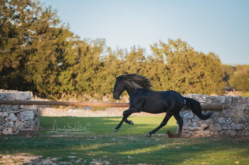 Kastration ist im Kaufpreis bereis enthalten! Salvador P.M. ist eines jener Pferde, die wir schon beinahe seit Geburt begleiten dürfen. Aufgewachsen auf den großen Weiden des Züchters, kam Anfang des Jahres in die Stallungen um ihn auf sein weiteres Leben vorzubereiten. Und für diese Zucht üblich geschieht dies in Ruhe und im Tempo des Pferdes. Das Jungpferde ABC sitzt und die weitere Trainingseinheiten werden altersgerecht absolviert. Salvador macht anständig mit und zeigt sich dabei neugierig und aufgeschlossen. Salvador ist sehr typisch für seine Rasse mit einem Hauch von Eleganz und einem hübschen, nicht zu übertriebenem Ramsköpfchen. Er ist super lieb und freundlich, bringt trotzdem Esprit mit dies macht ihn zum idealen zukünftigen Begleiter für eine engagierte Familie oder einen engagierten Freizeitreiter. Auch in der barocken Reiterei können wir uns ihn gut vorstellen - er ist generell mit guten Bewegungen ausgestattet. Aktuell ist er 154cm - sein Endmaß wird auf 160 +/- geschätzt. Salvador ist noch Hengst, auf Wunsch kann er kastriert werden (bereits im Preis inkludiert) Wir freuen uns auf Anfragen - weitere Informationen und Videos natürlich gerne möglich. Du willst Salvador persönlich kennenlernen? Dann begleite uns auf eine Reise in seine Heimat nach Apulien. Röntgenbilder bringt er ebenfalls mit, bei ernsthaftem Interesse sind diese einsehbar. Ebenso planen wir alles weitere für Dich - klinische Ankaufsuntersuchung, Abwicklung des Kaufvertrages, Transport in Deinen Heimatstall usw. - im Auftrag des italienischen Murgesenverbandes A.N.A.M.F.