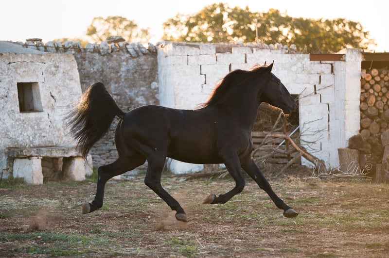 La castration est déjà incluse dans le prix d’achat ! Salvador P.M. Fait partie de ces chevaux que nous avons eu le privilège de suivre depuis presque leur naissance. Élevé dans les vastes pâturages de l’éleveur, il a rejoint l’écurie en début d’année pour préparer son avenir. Comme le veut la tradition dans cette élevage, cela s’est déroulé calmement et au rythme du cheval. Il maîtrise déjà les bases du jeune cheval et les séances d’entraînement suivantes seront adaptées à son âge. Salvador participe volontiers et montre une curiosité et une ouverture d’esprit remarquables. Salvador est très représentatif de sa race, avec une touche d’élégance et une jolie tête, sans excès. Il est très doux et amical, tout en ayant du tempérament, ce qui en fait le compagnon idéal pour une famille engagée ou un cavalier de loisir passionné. Il pourrait également convenir à la monte en dressage classique – il possède en général de bonnes allures. Actuellement, il mesure 1,54 m, sa taille finale est estimée à environ 1,60 m. Salvador est encore entier, mais peut être castré sur demande (déjà inclus dans le prix). Nous attendons vos demandes avec impatience – plus d’informations et des vidéos sont bien entendu possibles. Vous souhaitez rencontrer Salvador en personne ? Accompagnez-nous pour un voyage dans sa région natale, en Apulie. Il possède également des radiographies, qui peuvent être consultées en cas d’intérêt sérieux. Nous organisons également tout le reste pour vous – examen vétérinaire d’achat, gestion du contrat de vente, transport vers votre écurie, etc. - Au nom de l’Association italienne des chevaux de race Murgesen A.N.A.M.F.