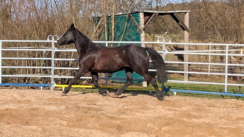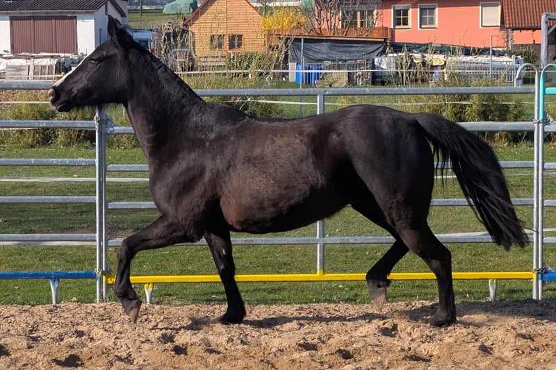 Father Blackjack, an original American Mustang https://share.google/j6l86GulIKr4t5v63 Mother Vandy, a French Thoroughbred, granddaughter of the legendary distance horse Dormane The result: A combination of spirited movement, robustness, drive, and courage – perfectly suited for endurance riding, a reliable distance horse is available!