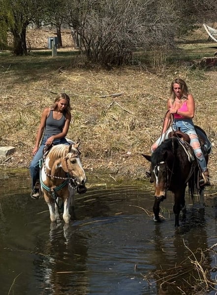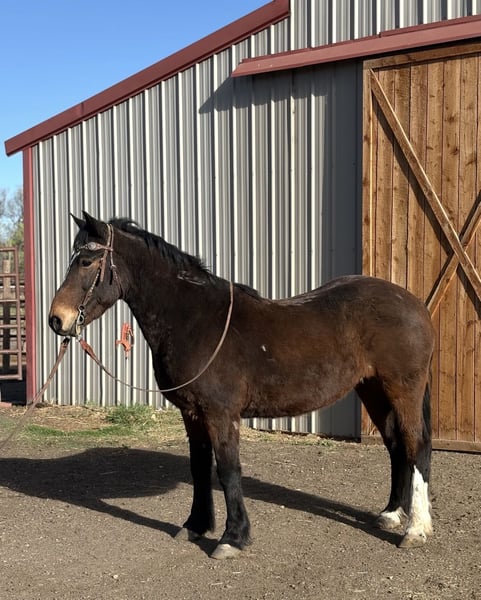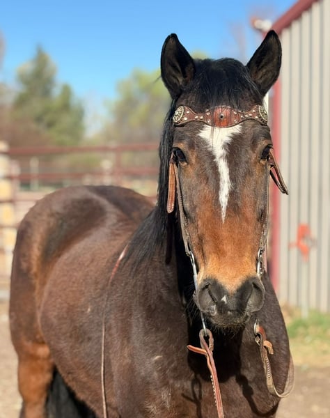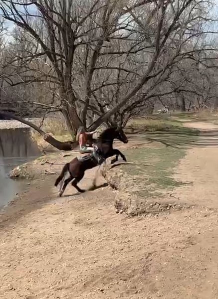 "AVAILABLE ON ONLINE HORSE AUCTION AT www DOT MagicHorseAuction DOT com BIDDING OPEN NOW thru TUESDAY | APRIL 14TH! BUY IT NOW AVAILABLE! *Final price will be determined on auction site* CONSIGNOR CONTACT INFO: Dynamite horses #970-632-3644 LOCATION: fort Collins, CO " "Cuervo is a 6-year-old bay mustang gelding standing at 14.1 hands, with a stocky build and eye-catching chrome markings that add to his charm. He’s got a bit of a nervous streak on the ground—he’s easily spooked of people on the ground and needs a calm, experienced handler who can approach him gently and confidently, because he might act like he’s seen a ghost every time you open his stall door. But once you’re in the saddle, Cuervo shines like a star. He’s incredibly smart, quick, and athletic—one of those rare horses that can really wow you with his skills. He’s free lunged over fences as high as 4’6” with ease, showing impressive power and grace. His agility is off the charts; he can spin tight circles that dig into the dirt, sidepass smoothly at all gaits (walk, jog, and lope), and turn faster on the rail than many cutters you’ll see out there. Cuervo can also perform six flying lead changes straight down the center line and stop instantly on command. On top of all that, he’s got a finished neck rein and responds beautifully to leg cues, making him a true pleasure to ride. He’s also seasoned on the trail, unfazed by bikes, runners, and even the chaos of downtown traffic. Bridges, lakes, rivers, tunnels—you name it, Cuervo’s crossed or gone through it without hesitation. The only real challenge with Cuervo is his nervousness on the ground, but if that wasn’t a factor, he’d be perfect even for the smallest riders, the more we work with him the better he gets and we truly believe with a forever person he will learn confidence on the ground as well. He’s genuinely a cool horse to ride and would be #1 on my list to keep if I had an extra spot for a personal horse. Come check him out and feel free to watch his video or get in touch with any further questions! "