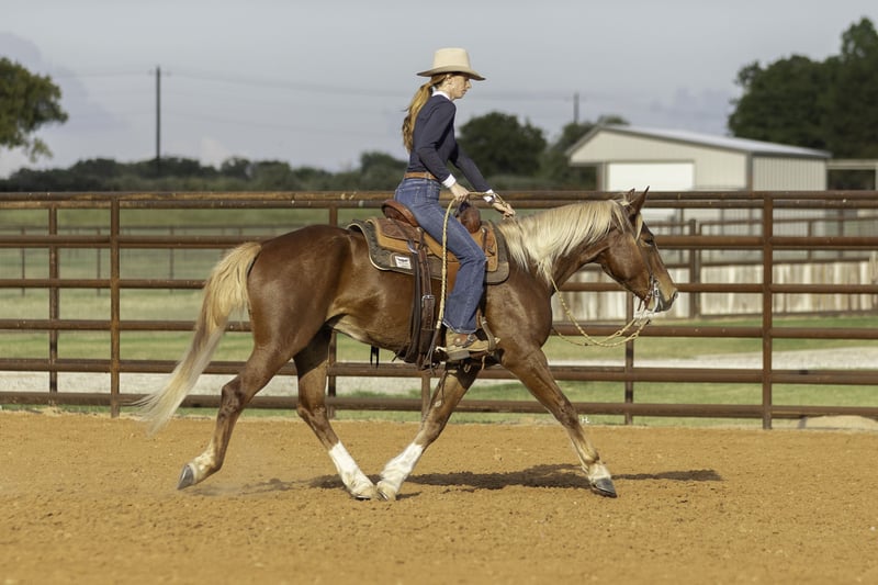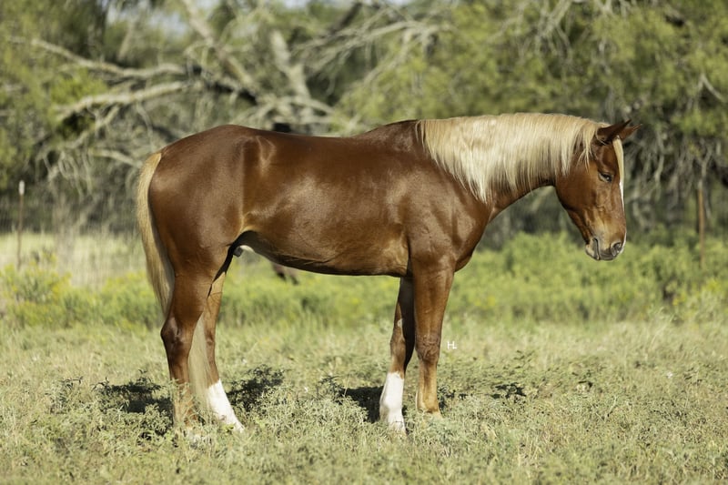 ♦️ 𝐭𝐡𝐞 𝐀𝐌𝐄𝐑𝐈𝐂𝐀𝐍 𝓕𝓪𝓵𝓵 𝓒𝓵𝓪𝓼𝓼𝓲𝓬 ♦️ Happening now thru MONDAY | OCTOBER 20th - Available EXCLUSIVELY on HorseBid's website! For more details and to register visit: www.Horsebid.com CONSIGNOR CONTACT: H Spur Performance & Versatility Horses 817-366-6123 LOCATION: Weatherford, TX BREED: Mustang REGISTERED: Yes REGISTERED NAME: Chester COLOR: Chestnut HEIGHT: 14.3 AGE: 6 GENDER: Gelding We’ve heard all of the stigmas surrounding them : “They can’t be soft and responsive.” “They’re not safe around kids.” “They’ll never be as good as domestic horses.”… but Chester is here to prove you wrong, and I promise he will. Chester is a 6yr old, BLM branded mustang that was gathered from the Sand Wash Basin in Colorado in 2021. From there Chester has blossomed into not only being the kindest soul, but an absolute favorite in the saddle. From ranch rodeos to ranch versatility shows to being a whole family type of horse, he’s gone above and beyond to prove his worth in every aspect. If you’re wanting a responsive and easy ride in the arena, you’ll be pleased when you climb into the saddle that’s on Chester’s back. He’s always in tune with his rider, picking up on not only cues from your legs but your seat as well, making everything feel effortless and easy. He’ll trot and lope the prettiest circles on as much rein as you’d like to give him; never going any faster than asked. Chester side passes easily both directions, will turn on his haunches or on the forehand, can do a flying lead change both directions, and will come to an easy stop or let the dirt fly with his impressive slide. If you feel like having some fun, you can peel his bridle off with the confidence of knowing he's still listening to you every step of the way. Chester has also done a multitude of things in the arena other than just being enjoyed. From ranch rodeos to ranch versatility shows, he’s competed in both with an undeniable presence. Although he’s just started his ranch versatility show career, he’s impressed judges with his natural ability and cadence scoring +1 on several scorecards for a multitude of maneuvers in several different classes. Not only does Chester have the ability to be a show horse, he shows real promise to take his rider to the pay window in the roping pen as he’s been both headed and heeled off of too. Outside of the arena, Chester has been used extensively to gather, sort, brand, and doctor in all different types of terrains. He’s as cowy as any NCHA competitor and will never quit you; catch him in the dim morning light and put him back at dusk and he will be happy to do it all again the next day. Not only has he been used for work outside, but Chester has also been ridden outside for leisure and is happy to travel down the trail alone or in a group. He handles vehicle and pedestrian traffic with ease as well as any obstacles you may come upon like downed trees, creeks, or street crossings. He’s patient, will ground tie if you need to get off for any reason, and stands quietly for you to get on without taking a step until you’re ready. Not only is Chester an absolute pleasure in the saddle but he’s just as enjoyable, if not more, to be around on the ground. If there is one thing Chester does not lack, that’s personality. His sweet nature makes all things a breeze from saddling to grooming and he enjoys just hanging out with you like another member of the family. He loads and unloads like any gentleman should and is quiet in the trailer when hauling. We’ve also ridden Chester after he’s had time off and he has never offered to do wrong in any way. Chester has good feet, no vices, and has never required any sort of maintenance or special care. He’s been an absolute joy to have in our program, and we know he’ll be a barn favorite for you too. We invite you to come meet Chester at our home in Weatherford, TX and can help set up hauling to wherever it is you call home. PPEs welcomed as always. More pictures and videos can be found by visiting Chester’s page on our website, www.hspurhorses.com/chester. For any questions and to talk about if Chester is right for you, don’t hesitate to contact Sarah at 817-366-6123.