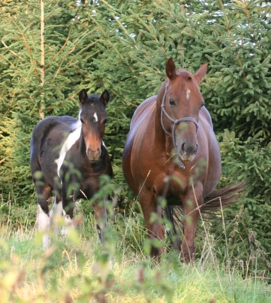 Achor est arrivée chez nous en 2021 depuis les vastes étendues du Canada. Elle est issue de deux captures sauvages. C'est une jument fine et discrète. Une mère attentionnée, elle est également capable de mener un troupeau avec brio. Elle sait aussi bien se soumettre. Sa mère, âgée de presque 30 ans, dirige encore le troupeau au Canada. Jusqu'à présent, elle a toujours donné, avec l'étalon coloré, des poulains excellents, très compacts et grands. Elle a été saillie par lui le 11/08/2024. Son poulain est donc attendu pour la mi-juillet. Les poulains issus de cet étalon coloré étaient toujours colorés, avec peu de blanc. Ils ont été vendus à des prix élevés. Avec l'étalon doré, elle a donné naissance à un étalon alezan foncé. Jusqu'à aujourd'hui, elle a eu 2 juments et 2 étalons. Elle se débrouille seule pour le poulinage. Nous avons également d'autres juments à vendre, ainsi qu'Ari, notre étalon doré. Vous pouvez constituer votre propre petit troupeau de mustangs, car tous se connaissent entre eux.