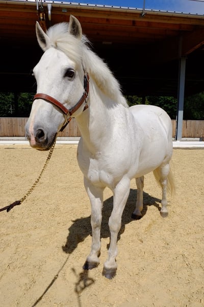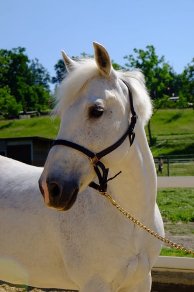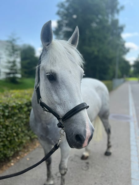 Are you dreaming of an elegant partner in equestrian sport who knows how to convince both in the show jumping course and in the dressage arena? Meet Silver, the 16-year-old grey mare who combines experience and elegance. Their outstanding features: - Versatile talents: Silver has not only gained experience in show jumping, but also attracts everyone's attention in the dressage arena. With its three impressive and comfortable gaits, it fascinates every connoisseur. - Experienced and reliable: Silver excelled in our riding school. She knows exactly what she has to do on the course and has enough "go" to help ambitious young riders advance in show jumping. However, it is not suitable for beginners or anxious riders. - Impeccable character: In daily dealings, Silver is uncomplicated and well-behaved. Be it with the farrier or loading, she always shows her best behavior. Things to know about Silver: - Social Mare: During the day, Silver enjoys being in the paddock in the company of other ponies. She shows herself to be a higher-ranking mare. - Special feed needs: It is important to note that silver needs wet or steamed hay. Otherwise, she may react with a coughing stimulus. Silver is an impressive grey mare who knows how to shine in dressage as well as in show jumping. With her experience and elegance, she is the perfect partner for ambitious riders who are ready to take their skills to the next level. If you would like to take full advantage of Silver's potential and offer her a loving home, please contact us for more details and viewing appointments. We are convinced that Silver and her new rider can become an unbeatable team.