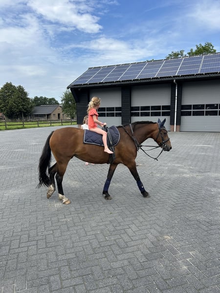 Helaas moeten wij wegens tijdgebrek van de ruiter besluiten onze lieve pony te verkopen. Ze staat nu stil en dat is echt zonde. Deze new forest pony komt uit een goede foklijn en zou ook geschikt zijn als fokmerrie. Is hier recreatief gereden maar zou ook goed geschikt zijn als spring/crosspony. Heel lief voor kinderen, wel werkwillig. Ze is kerngezond en leeft zo ongeveer op water :-).