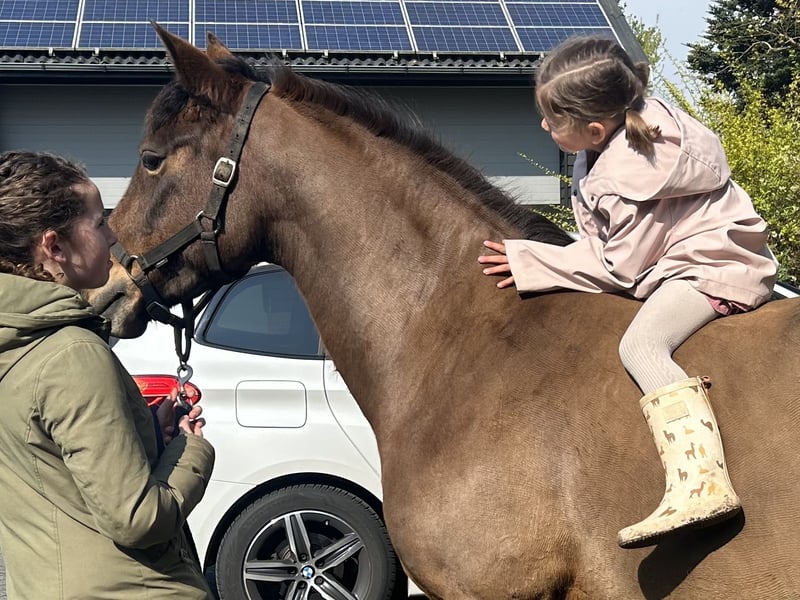 Unfortunately, due to the rider's lack of time, we have to decide to sell our lovely pony. She is currently standing still, and that is really a shame. This New Forest pony comes from a good breeding line and would also be suitable as a broodmare. She has been ridden recreationally but would also be well suited as a jumping/cross pony. Very sweet with children, yet willing to work. She is in excellent health and practically lives on water :-).