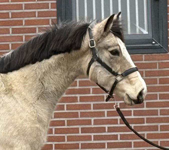 Durch Inzahlungnahme ist dieses beeindruckende Allround-D-Pony erhältlich. „Vikki“ ist eine auffällig schöne D-Pony-Stute. Sie verfügt über eine schöne Falbe/Isabell-Farbe. Sie steht korrekt auf den Beinen und hat viel Substanz. Sie bewegt sich schön und springt sehr gut. Sie kann einen kleinen Parcours springen. Sie besitzt einen französischen Pass und ihr Vater ist ein New Forest. Bei Interesse bitte telefonisch oder per WhatsApp unter der Nummer: +31643197337 melden.