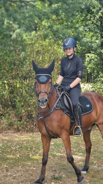Sei alla ricerca di un pony onesto, gentile e affidabile che si comporti bene in tutti gli ambiti? Se c'è un legame di fiducia, farà tutto per te? Tico è un New Forest tranquillo e affidabile di 16 anni. Viene ceduto a causa del passaggio a un cavallo. Misurato da giovane a 147 cm, quindi nel suo passaporto è registrato come pony D, ma attualmente ha un'altezza al garrese di 150 cm, quindi è un pony E. Attualmente Tico compete in L1, ma può fare di più: ha ricevuto allenamenti da Seth Boschman, dove è emerso che può eseguire anche gli esercizi di L2. L'interesse di nostra figlia era più orientato al salto e al cross: ha ottenuto punti gara in 80 cm, e in allenamento salta almeno 1 metro. Ha esperienza in competizioni di dressage, cross e salto. In questo senso ha ancora potenziale per gli anni a venire. Nostra figlia sta imparando a eseguire un cambio di galoppo, e lui lo fa spesso da solo. Impara rapidamente, a patto che si lavori con mano delicata e onesta. In dressage si comporta molto bene: ha vinto diversi primi e secondi posti in B, così come in L1. Ama molto andare in passeggiata, sia da solo che in gruppo, entrambe le cose gli piacciono molto! In questo caso fa tutto per te (attraversare acqua, saltare tronchi, scale, ecc.) Quando lo abbiamo preso, non amava molto il trailer, ora ci sale senza problemi. Tico non ha vizi da stalla, va d'accordo con altri cavalli e ama essere spazzolato e coccolato. Non gli piace stare da solo, quindi andrà solo in una casa dove ha un compagno di pascolo. Non ci sono problemi durante le passeggiate, l'allenamento o nel trailer. In estate indossa una coperta e una maschera contro le mosche, poiché ha una leggera forma di dermatite estiva. Grazie a una buona alimentazione, riusciamo a controllarla. Passa tutta la giornata al pascolo. Tico ha ricevuto regolarmente vaccinazioni e sverminazioni ogni anno, e controlli dal veterinario e dal maniscalco. È in ottima salute, non ha particolari problemi medici e non è ferrato. A seguito di una storta avvenuta la scorsa primavera, sono state effettuate radiografie e un'ecografia, che hanno confermato che tutto è a posto, sia per quanto riguarda la salute generale che per la gamba posteriore destra. Se si desidera una visita clinica e un esame radiologico, i costi sono a carico dell'acquirente. Tico andrà solo in una bella casa a 5 stelle, commercianti e maneggi non devono rispondere. Include: sella da salto e da dressage, 2 testiere, coperta contro le mosche, ecc. Molte foto e video disponibili per chi è seriamente interessato. Prezzo trattabile per la giusta sistemazione.