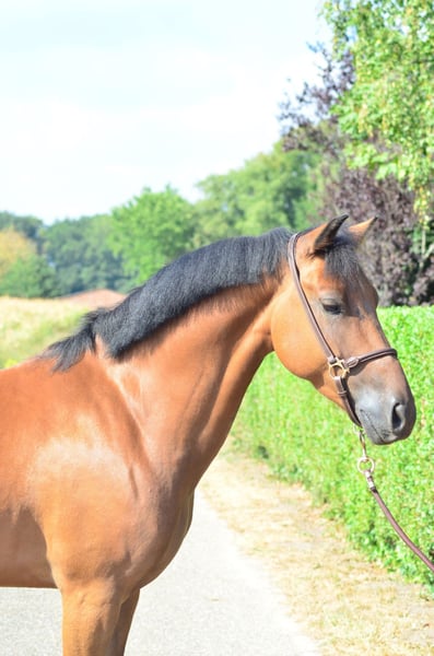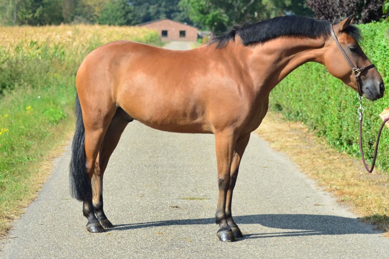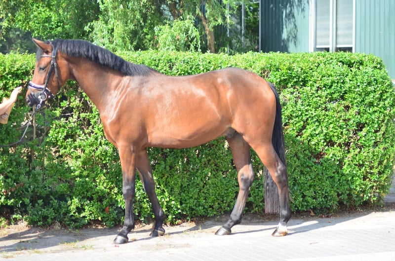 Lucky (Spoekedammetje’s Nick x Justice H.R.) ist ein schöner 5-jähriger Wallach, geeignet für den vielseitigen Sport. Lucky ist eingetragen im New Forest Stammbaum und hat derzeit eine Stockmaß von 1,45 m, was ihn zum idealen Sportpony für den vielseitigen Reiter/ die vielseitige Reiterin macht. Seine Mutter, Justice H.R. x Kantjes Ronaldo, war im Alter von 6 Jahren im Springen erfolgreich und wurde aufgrund von Corona in die Zucht eingebunden. Trotz seines jungen Alters absolviert er bereits brav die Parcours und hat dabei schon wertvolle Erfahrung gesammelt. Neben seinem Springtalent verfügt er auch über viel Qualität und schöne Bewegungen, die ihn in der Dressur vor der Kutsche glänzen lassen. Lucky besitzt zudem ein angenehmes und arbeitswilliges Wesen, das ihn motiviert, für seinen Reiter/ seine Reiterin zu arbeiten. Auch im Umgang ist er ein freundliches und liebes Pony, das sich gut verstellen, pflegen, aufsatteln und bei allen anderen Aktivitäten zeigen lässt. Für weitere Informationen zu diesem Top-Pony können Sie mich unter der Nummer 06 29024323 kontaktieren oder eine WhatsApp-Nachricht schicken.
