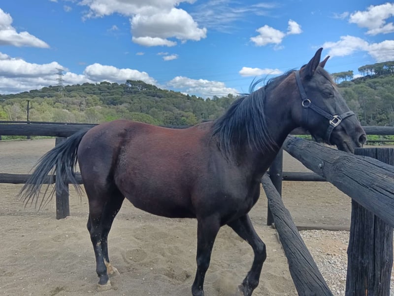 Jolie jument noire de 8 ans, avec passeport, mesurant 1,66 m, totalement saine et gentille, adaptée à tout cavalier. Elle est à vendre pour des raisons personnelles et un manque de temps pour monter. Très puissante, elle a un bon pas, trot et galop, mais pourrait être dédiée à la compétition.