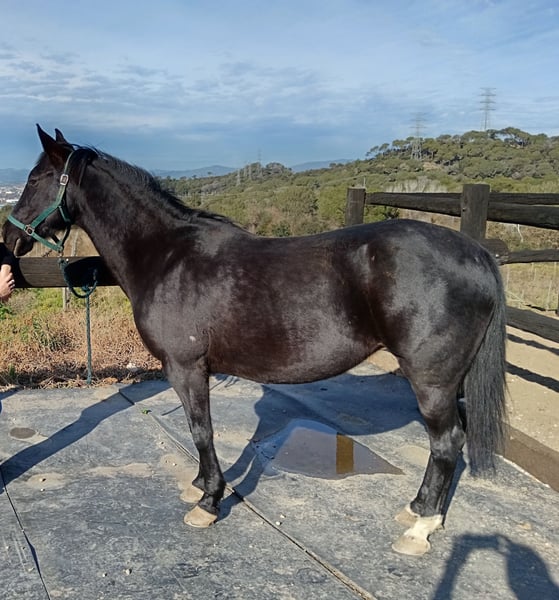 Preciosa yegua de color negro con 9 años, pasaporte, altura 1.66 cm totalmente sana y noble, apta para cualquier jinete. Se vende por motivos personales y falta de tiempo para montar. Muy potente, paso trote y galope, pero podría dedicarse a competición.