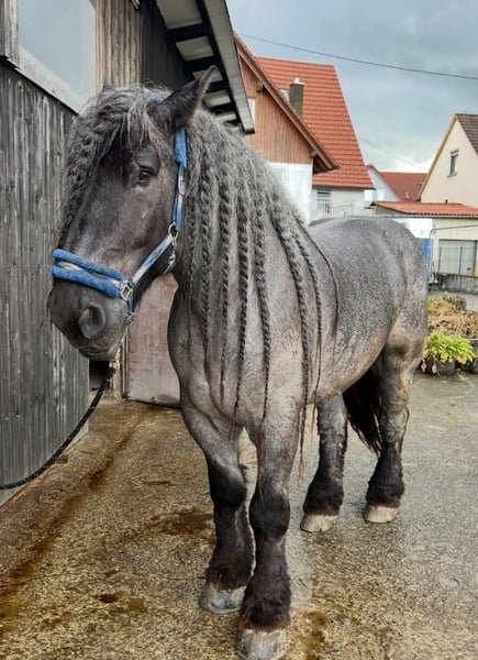 Wunderschöner Niederländischer Kaltblut-Wallach mit Traum-Mähne – Jahrgang 2016 – ca. 1,70 m Schweren Herzens steht unser beeindruckender Niederländischer Kaltblut-Wallach zum Verkauf. Geboren 2016 und mit einem Stockmaß von ca. 1,70 m bringt er nicht nur Größe und Ausdruck mit, sondern auch eine absolut traumhafte, lange und volle Mähne, die alle Blicke auf sich zieht. Er ist ein charakterstarker Wallach, der nicht immer ganz einfach im Umgang ist und daher unbedingt in erfahrene Hände gehört. Er braucht eine ruhige, konsequente Führung und eine klare Bezugsperson. Bei fairer Behandlung und Vertrauen zeigt er jedoch sein großes Herz und entwickelt sich zu einem treuen Partner. Als Freizeitpferd macht er große Freude – ob bei entspannten Ausritten, gemeinsamer Bodenarbeit oder einfach beim Zusammensein. Er bindet sich eng an „seinen“ Menschen und sucht jemanden, der ihm Sicherheit, Geduld und Zeit schenkt. Er leidet an CPL. Mit der richtigen Pflege und konsequentem Management hat er damit jedoch keine Probleme und ist gut händelbar. Er ist mittlerweile sehr verladefromm und meistert das Verladen zuverlässig und ruhig. Er wird mit komplettem Zubehör verkauft (Sattel, Trense, Decken usw.), sodass einem direkten Start nichts im Wege steht. Er ist vorne beschlagen. Kein Anfängerpferd – aber für den richtigen Menschen ein ganz besonderes Herzenspferd. Bei ernsthaftem Interesse freuen wir uns über eine Nachricht und ein persönliches Kennenlernen. Um den „Reittourismus“ zu vermeiden, verlange ich 30 Euro für das Probereiten. Das wird beim Kauf dann natürlich berücksichtigt. Es handelt sich nicht um ein Notverkauf. Wird nur in allerbeste Hände verkauft. Wird nicht an Händler oder Reitschulen verkauft.