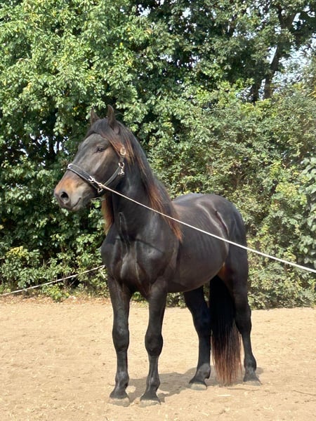 Hallo, ich suche bereits seit Monaten einen guten Platz für den super lieben Ventus. Er ist Krytptochid Hengst !! Obwohl er ein Hengst ist, merkt man es ihm nicht an. Er steht im Stall und auch draußen neben Stuten und es interessiert ihn nicht. Auch in der Halle können Stuten anwesend sein, er reagiert nicht mal auf Anspielungen. Geht alleine ins Gelände etc. Er wird seit Monaten nicht gut versorgt und ich bin seit Sep. letzten Jahres gesundheitlich extrem eingeschränkt, was auch noch länger andauern wird. Leider bezahle ich viel Geld und die Versorgung wird trotzdem vernachlässigt. Ich kann mir die Kastration und eine weitere fördernde Ausbildung von ihm nicht leisten, da er nur einen Hoden unten hat und somit in einer Tierklinik operiert werden muss. Mir ist es sehr wichtig, dass er einen guten Platz bekommt, wo er dann auch weiter gefördert wird. Die Grundlagen sind bereits vorhanden, longieren, alleine ins Gelände gehen, verschiedene Orte kennenlernen, Straßenverkehr, etc. Ich möchte für ihn kein Geld haben, mir ist es wichtiger, dass er es gut hat und betüddelt wird. Es gab bisher zwei Interessenten, die jedoch dann absagten (Mann war nicht einverstanden oder der Stallbesitzer), daher bitte ich darum, vorab alles abzuklären !
