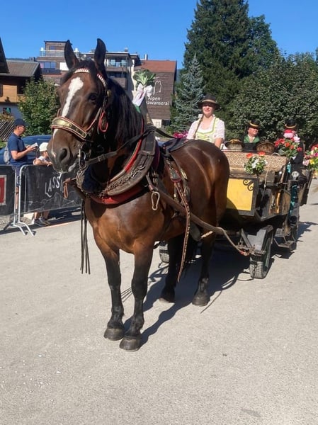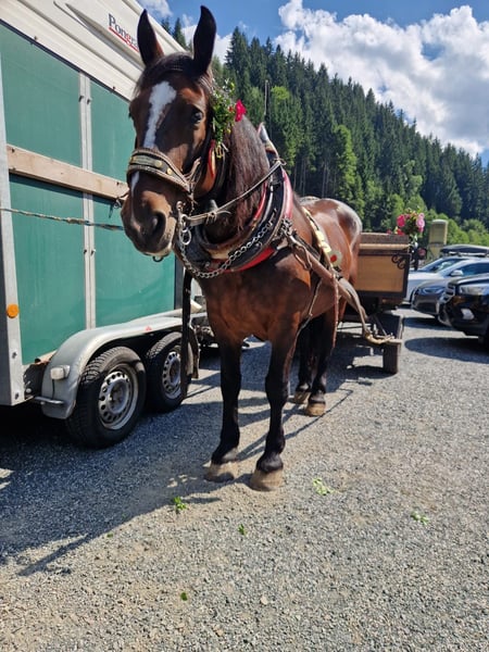 Norikerstute Roni Zum Verkauf steht unsere liebe Roni. Sie ist eine 12-jährige Norikerstute mit viel Erfahrung im Fahrsport und absoluter Verlässlichkeit im Gespann. Ihre große Stärke liegt im Kutschbereich. Sie wurde regelmäßig 1-, 2- und 3-spännig gefahren und war besonders im Sommer zuverlässig dreispännig vor der Kutsche im Einsatz. Dabei zeigt sie sich stets fleißig, motiviert und arbeitswillig. Im Winter war sie bei uns im Reitstall untergebracht, wurde dort geritten und auch im Schulbetrieb eingesetzt. Auch unter dem Sattel überzeugt sie mit fleißigen, schwungvollen Gängen und einer sehr motivierten Arbeitseinstellung. Daher können wir sie uns auch im Freizeitreitsport sehr gut vorstellen. Roni ist für einen Noriker eher sportlich gebaut, leistungsbereit und mit angenehmem Vorwärtsdrang ausgestattet. ✨ Unser Wunsch: Wir suchen für sie einen wertschätzenden Platz, an dem sie – idealerweise im Fahrsport – regelmäßig gearbeitet und ihren Stärken entsprechend eingesetzt wird. Gleichzeitig sehen wir auch im Reitsport schöne Perspektiven für sie.