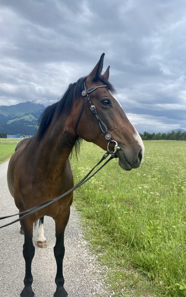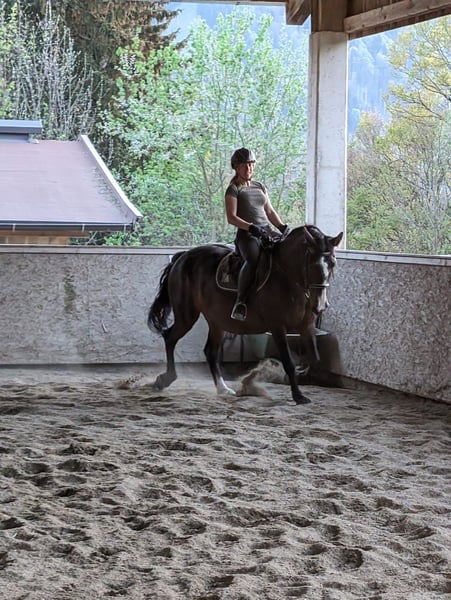 Maya, eine 15-jährige Noriker-Mix-Stute, ist auf der Suche nach einem neuen liebevollen Zuhause. Maya lernt sehr schnell und möchte stetig gefordert werden. Aufgrund beruflicher Veränderungen habe ich nicht mehr genügend Zeit, um Maya ihren Ansprüchen gerecht zu werden. Wir haben mit Maya regelmäßig Dressur und Springstunden genommen. Sie ist ein tolles Freizeitpferd, benötigt aber die Sicherheit ihres Reiters. Reiten in der Halle oder auf dem Platz ist für sie überhaupt kein Problem. Beim Ausreiten (alleine) kommt es ehrlich gesagt auf den Reiter an. Ausreiten mit anderen Pferden ist überhaupt kein Problem. Gruppenreitstunden haben auch immer einwandfrei funktioniert. Sie benötigt einen erfahrenen, selbstbewussten Reiter, für Anfänger ist sie weniger geeignet.