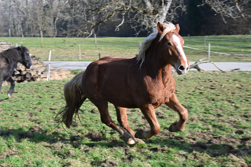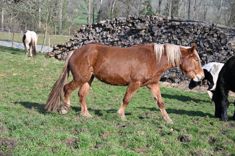 Dit mooie, majesteitelijke donkervos Noriker merrie zoekt haar mens. Larissa is geboren op 5 februari 2023 en wordt dus 3 jaar oud. Ze wordt ongeveer 1,63-1,65 m groot. Larissa is zelfverzekerd, vriendelijk en beheerst de basis van de jonge paardenopleiding goed. Ze vindt het heel leuk om verzorgd te worden en blijft rustig en braaf staan. Zoals al mijn paarden, kent Larissa kinderen, katten, koeien, alpaca's, boerderijmachines, auto’s en honden. Ze bracht haar eerste zomer met haar moeder door op de alm, en bij ons leeft ze op een diervriendelijke manier in een groep. Tijdens de zomer is ze altijd buiten geweest. Larissa heeft een heel mooie, ruimte-innemende draf. Ze wordt regelmatig ontwormd, gechipt en geregistreerd. Larissa beschikt over een volledig papier en is voor alle disciplines zeer interessant. V: Balisto Nero MV: Engelbert Vulkan