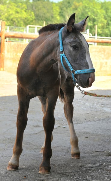 Starlight Kubny ist eine sehr hübsche, korrekte Noriker Schabracktiger Stute die noch weiter Tigern wird, sie hat ihre endfarbe noch nicht erreicht. Alles was jetzt gräulich ist wird weiss und sie hat Punkte bis zum Widerrist. Starlight ist ein sehr freundlicher und sanftes Fohlen mit kräftiger Statur und genau wie ihre Mana ist sie sehr nervenstark und unerschrocken. Sie wird ca. 161-164cm gross werden. Ihr Vater ist Fragolino Elmar der mit 7,64 Punkten gekört wurde und die Hengstleistungsprüfung als Reservesieger mit dem Index 123,35 absolviert hat. Die Mutter Samira ist mit 7,64 Punkten als Hengstmutter im Stutbuch aufgenommen und hat die Leistungsprüfung mit der Wertnote von 7,67 Punkten gut absolviert. Samira hat ein überaus hochwertiges Pedigree vor zu weisen. Ihr Vater ist Taiga Vulkan der die Hengst Leistungsprüfung 2005 mit einem Index von 133,04 gewonnen hat und als Elitehengst ausgezeichnet wurde, für besonders erfolgreiche Nachkommen. Er stammt von dem 1b Hengst Taifun Vulkan XIV ab. Sabrina ist die Mutter von Samira, sie ist mir 7,91 im Stutbuch aufgenommen und nach Schitter Vulkan, Senat die Oma ist ebenfals eine 1b Staatspremien Stuten. Der ganze Stammbaum ist Hervorragende. Starlight wird noch bis November bei ihrer Mama bei Fuss bleiben. Sie darf dann entweder ausziehen oder wie andere hier zur Aufzucht bleiben. Selbstverständlich üben wir das Fohlen ABC in der Zeit. Starlight ist PSSM1 frei.