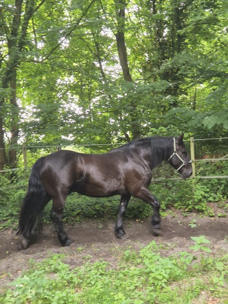 Schweren Herzens verkaufe ich meinen Noriker-Wallach Salvador (geb. 2016, Stockmaß ca. 163 cm). Salvador ist ein braver Kerl, der sowohl im Gelände als auch auf dem Platz geritten wurde. Da er in letzter Zeit aus Zeitmangel wenig gearbeitet wurde, verkaufe ich ihn ausdrücklich als angeritten. (Richtung barock/Freizeit) Er ist beim Hufschmied absolut unkompliziert. Fremden gegenüber zeigt er sich anfangs etwas unsicher, bleibt dabei aber stets brav. Bei uns steht er in einer gemischten Herde und ist eher rangniedrig. Er ist an 24/7 Weidegang im Sommer sowie Paddock (tagsüber) und Box (nachts) im Winter gewöhnt. Salvador wird nicht verschenkt – Platz vor Preis! Mir ist es wichtig, dass er ein schönes, dauerhaftes Zuhause findet. Alles Weitere gerne persönlich bei einem Kennenlernen vor Ort. Privatverkauf ohne Gewährleistung oder Rücknahme.