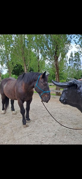 Op zoek naar een nieuw thuis voor mijn Noriker Anton (Diamant-lijn). Anton is een XL knuffelbeer met zijn 167 cm, 13 jaar oud, en is zowel in het terrein als op de piste volledig ontspannen. Hij is waarschijnlijk al aangefahren door zijn vorige eigenaar (geen garantie, ik rijd niet). Hij wordt gereden door beginners en maakt ook bij de grondwerkelijke oefeningen grote vorderingen. We gaan regelmatig op natuurtrailritten, doen schriktraining en oefenen aan de vrijheidsdressuur. Een geweldig paard dat, ondanks zijn grootte en gewicht (800 kg), graag gestimuleerd wil worden. Een klein minpuntje: hij gaat helaas niet alleen het terrein in en heeft een toevallige diagnose van artrose in een been, wat zich niet merkbaar uit. Anton staat in een open stal, beweegt graag en ik zou willen dat hij in een open stal blijft. Omdat ik de komende jaren wegens privéomstandigheden minder tijd zal hebben, moet ik mijn paardenbestand verminderen. Het is geen noodgeval, ik zoek een mooi nieuw thuis voor hem 😊